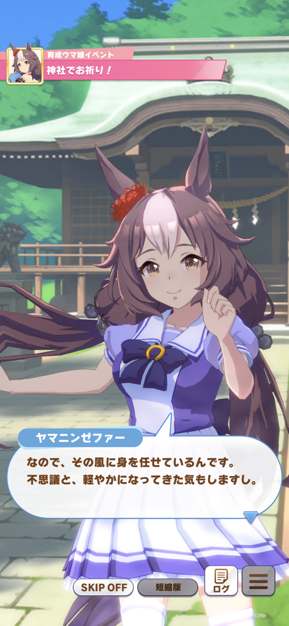 そこでこの初詣です。ゼファーが精神的に成長し視野が広がった結果、やることが「トレーナーのために祈る」なのです。いい子。とってもいい子なんです。