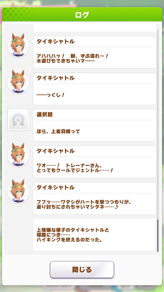 タイキに受動的で、物語的な起伏に乏しいと言われているが、実はタイキトレの方の感情が余り豊かでなかったみたいな解釈があったっけ。