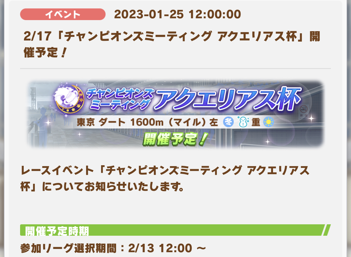 流石に情報解禁済みで実装待ちウマ娘のストックが少ないからか