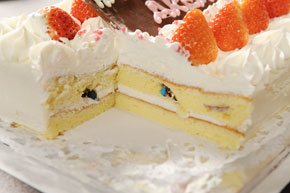 「そうそう、今日はデザートにケーキも用意してあるんだよ🍀実はね?私の誕生日にキミと撮ったツーショット写真が入ってるの!他にも色んなキミとの写真を入れてるんだけど、あとは…あっ!このゴムっぽいのはね?キミと私の初めての……」