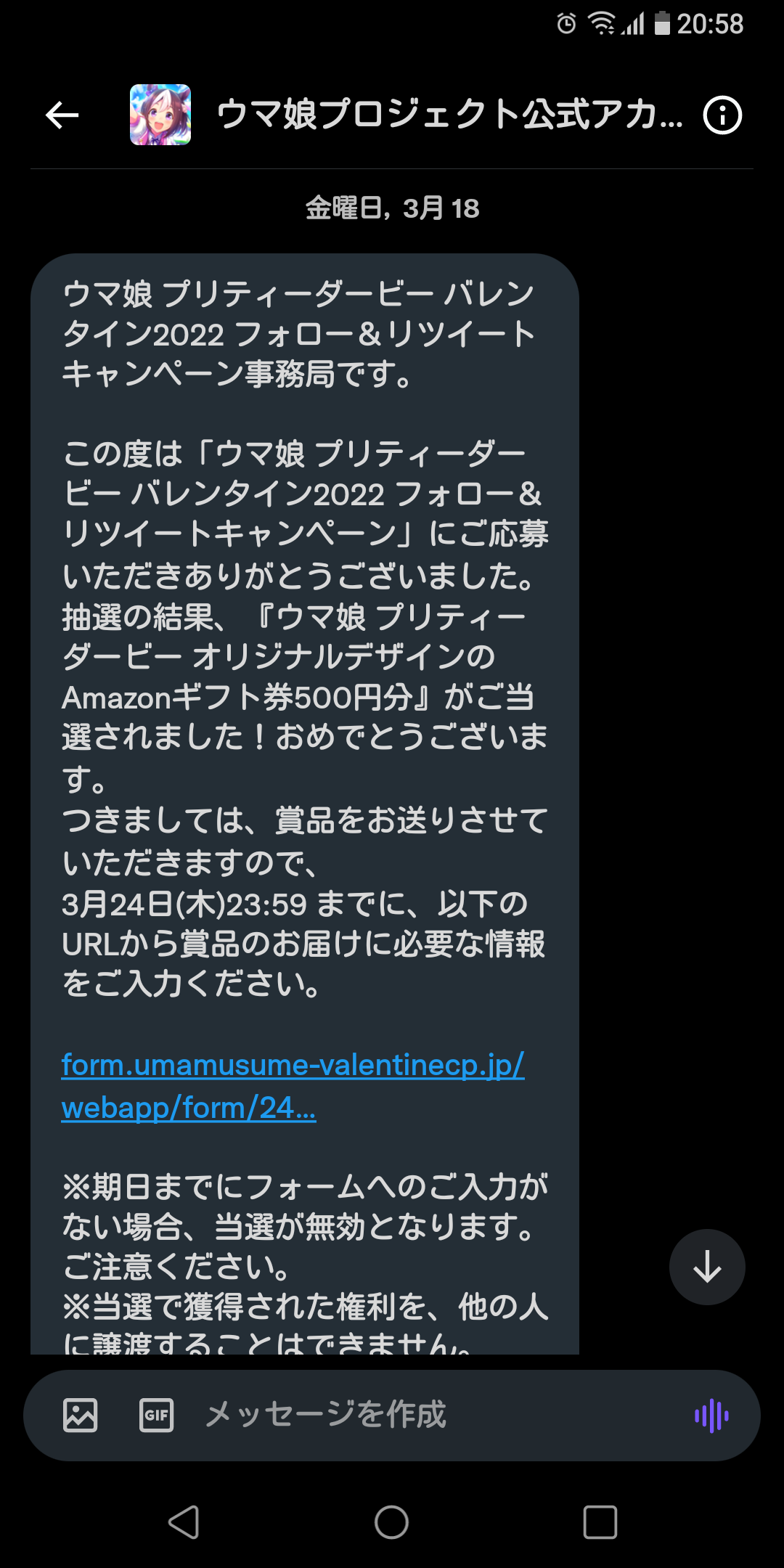 去年のバレンタインキャンペーンに当たった