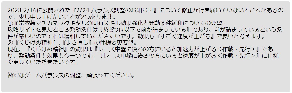 ウマ娘2の時も「固有問題ナシ!修正ナシ!」で今回も?