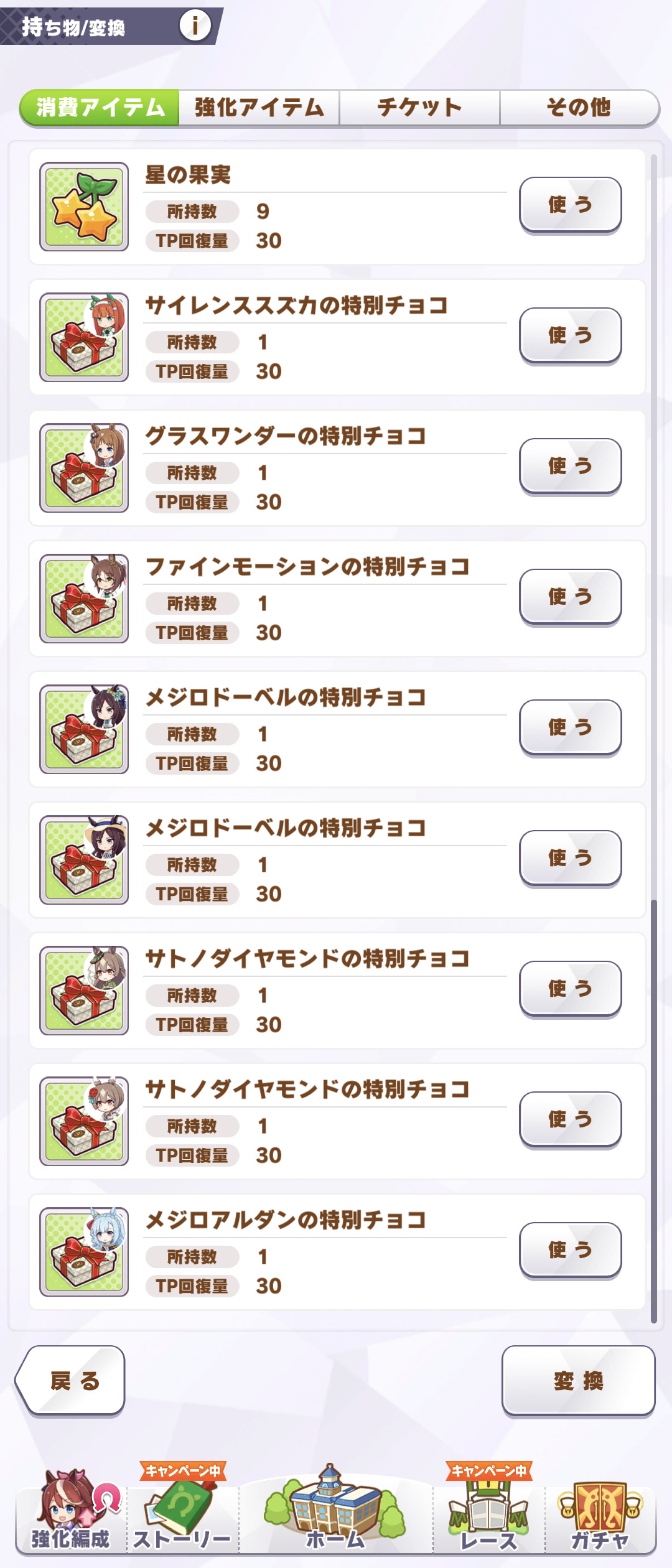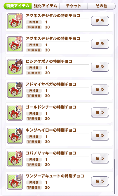 推し5人から6個、あとは次に好きなキングとシチーさんから貰って終了