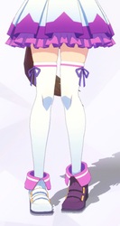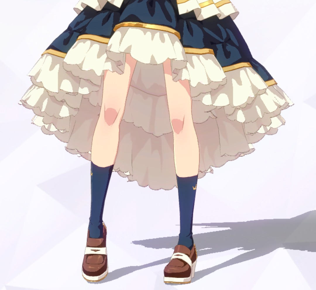 光が当たってると分かりにくいけれど、細めの足に花びらのようなデザインのニーソがとても映えている