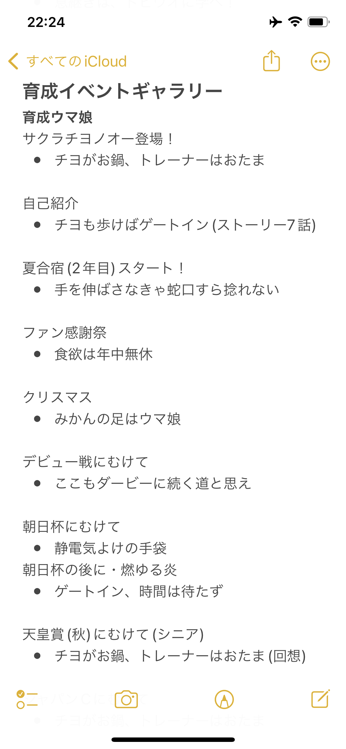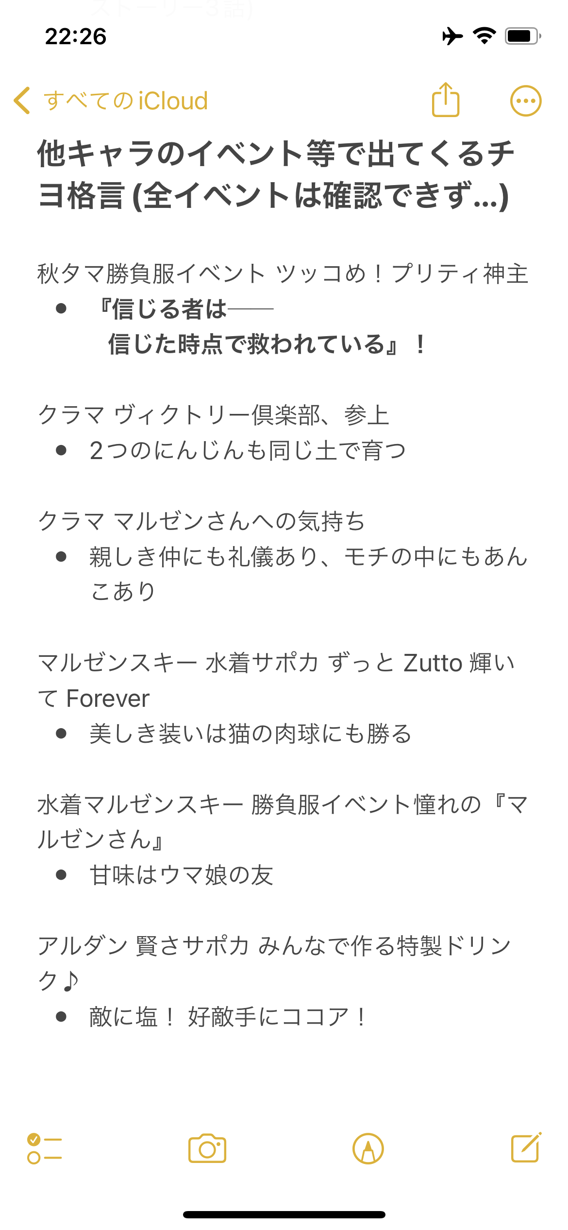 チヨちゃんの育成イベント、サポカイベント等は確認できましたが、誤字脱字、抜け等があるかもしれません、ご注意ください