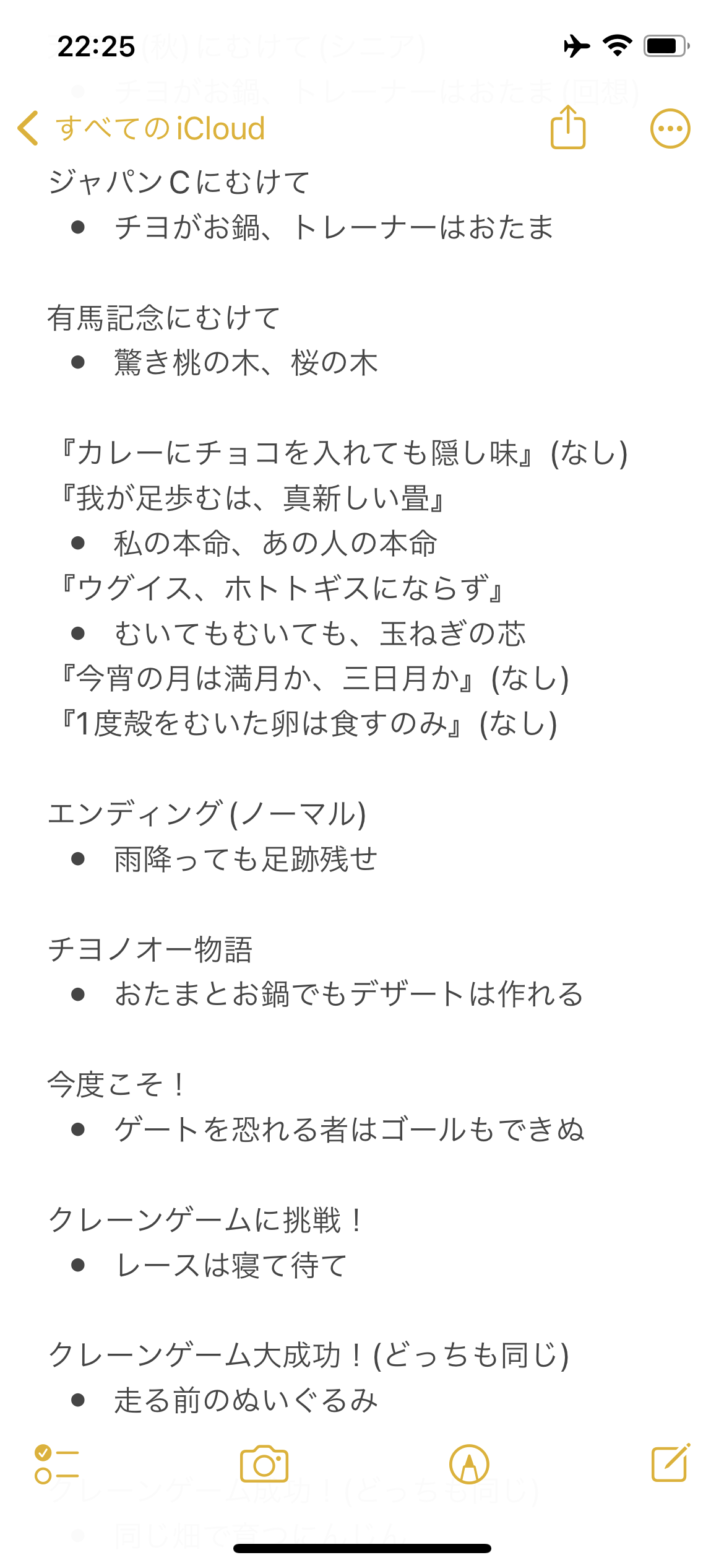 サクラチヨノオーのチヨ格言、どこかに一覧とかないのかなぁって思って探してみたのですが、無さそうだったので自分でまとめることにしました