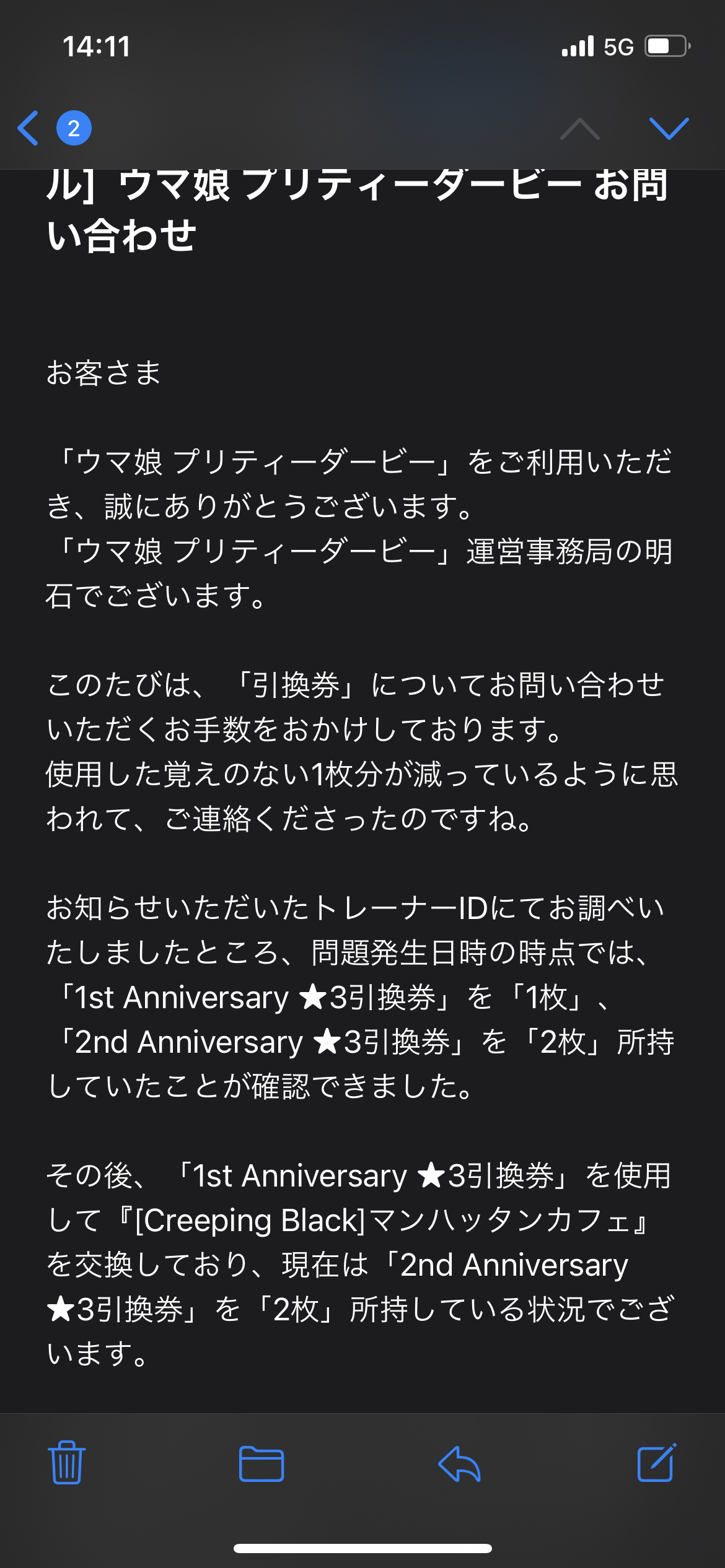 回答きた!対応してくださった運営スタッフさんには感謝しかないな
