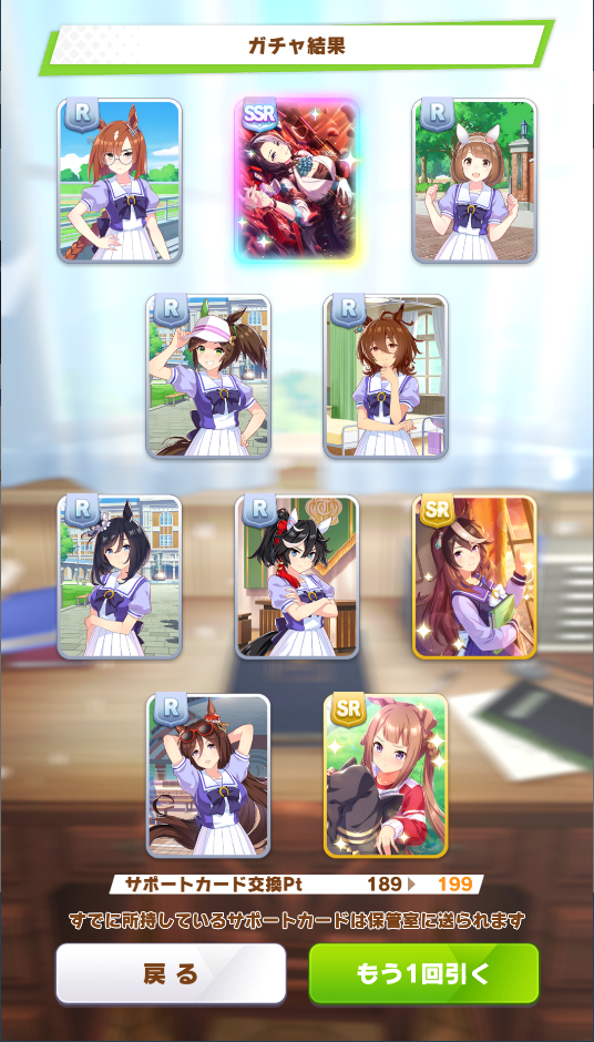 さらにSRも会長7枚くらい来たのに未だに根性ドーベルは1枚も来ていない