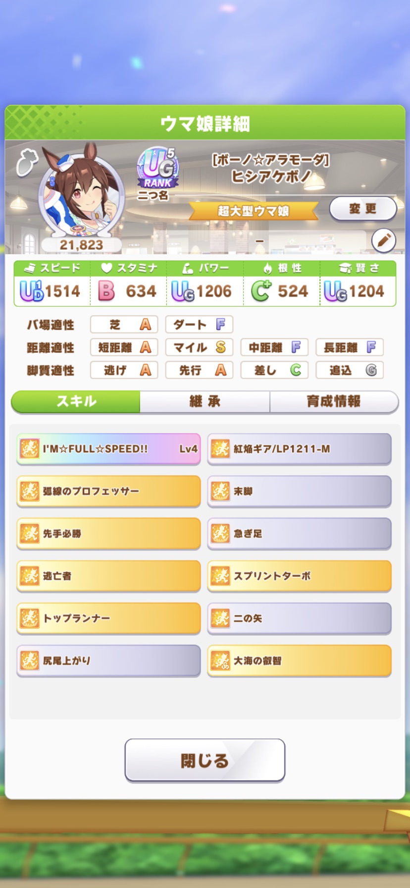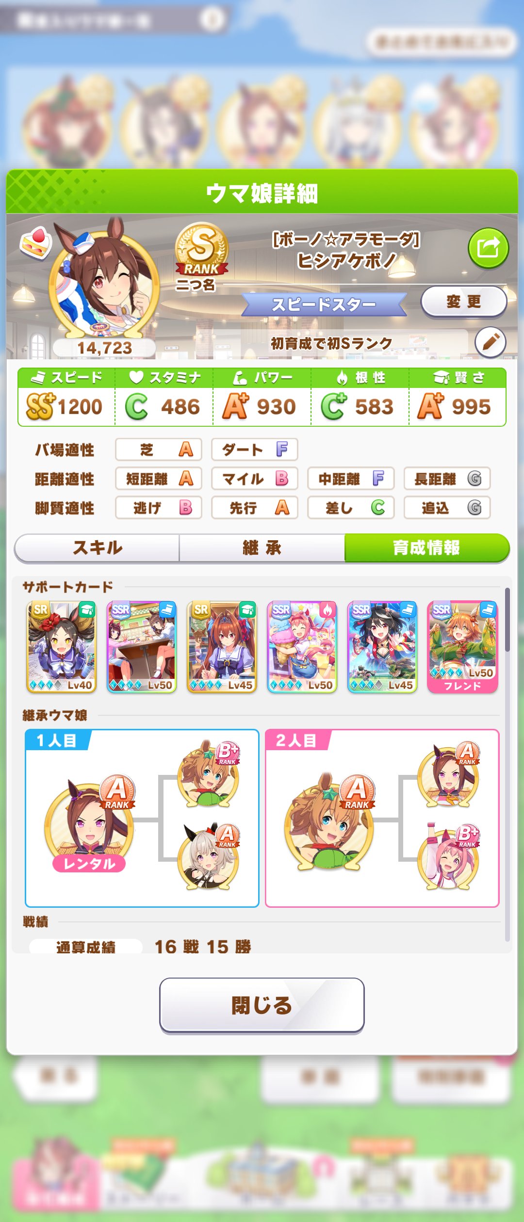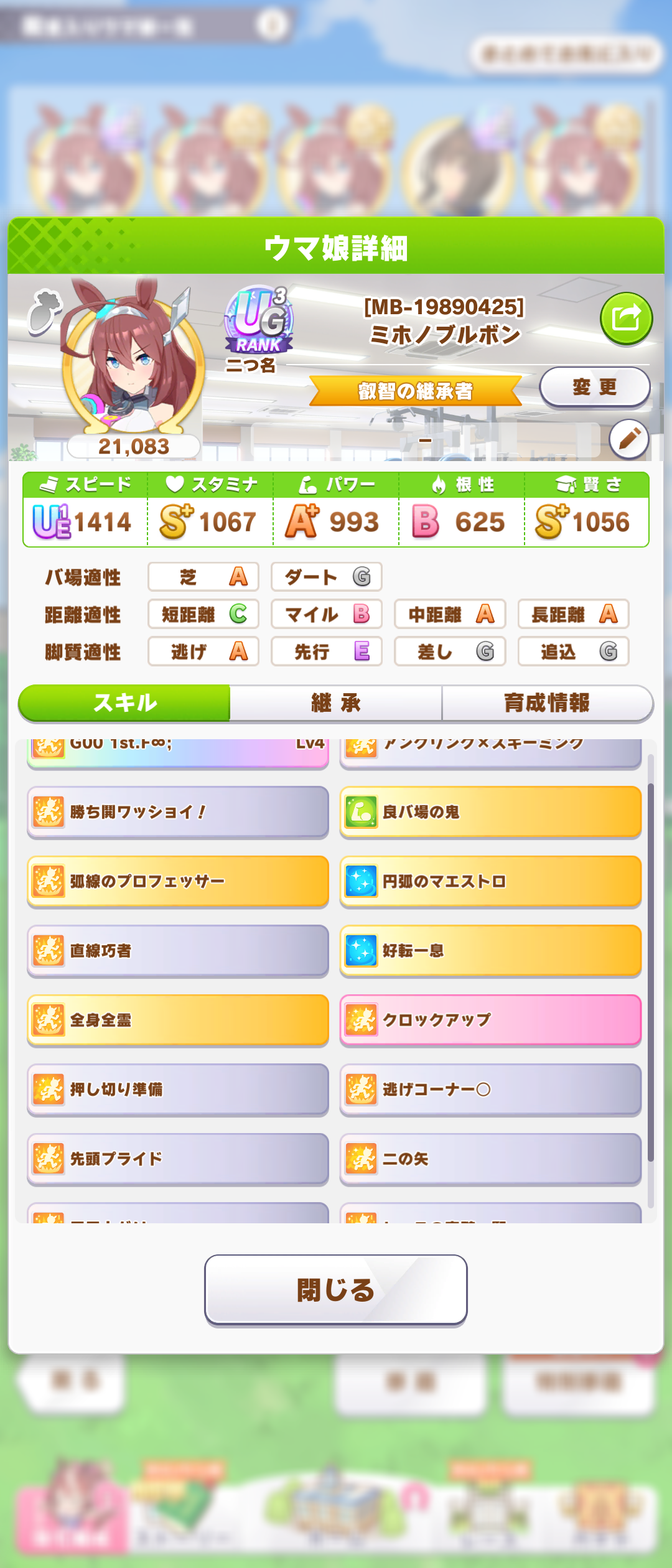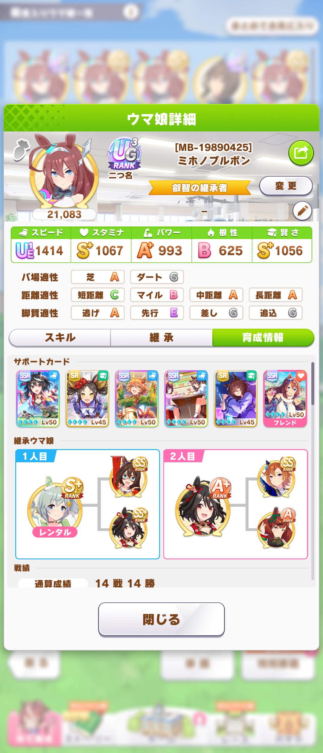 長距離用なのに中距離取ってんじゃねェって言われそうだから先に言っとくが、このすたみーじゃ無理だなって思ったから途中で中距離想定に切り替えたんや。どうせ5と6往復民だから一枠ガバがあっても問題じゃないんでな