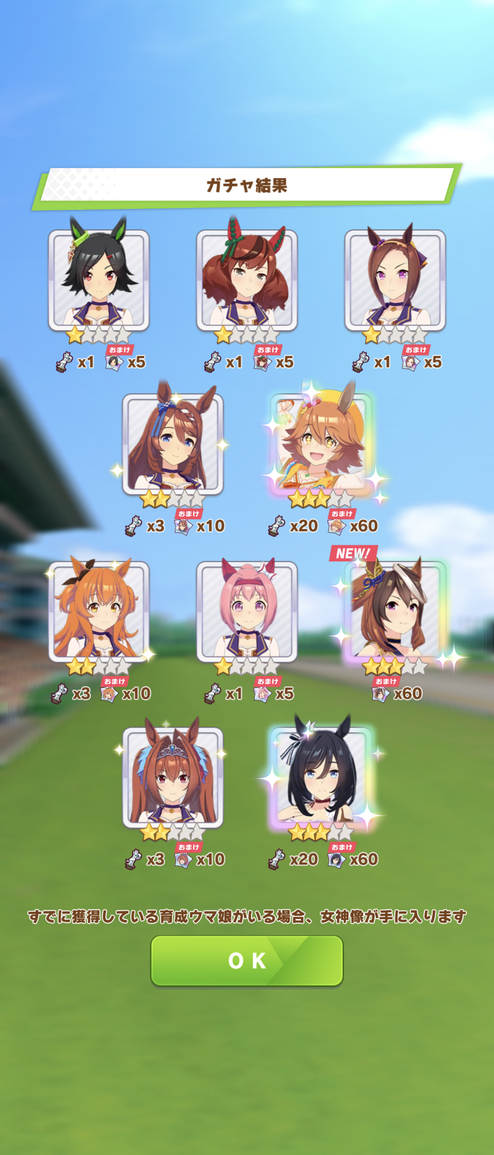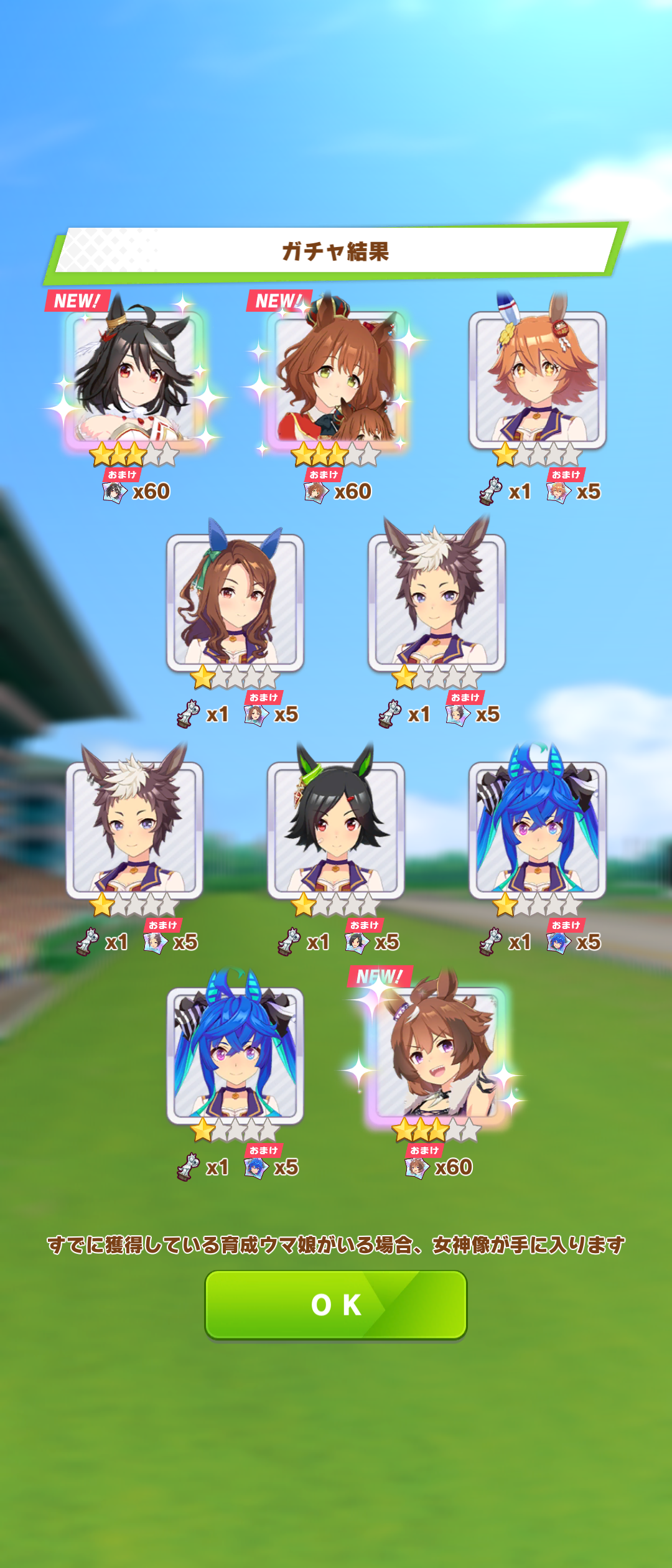 タイシンとウオッカが来たけど、別衣装よりも新キャラが欲しいなあ