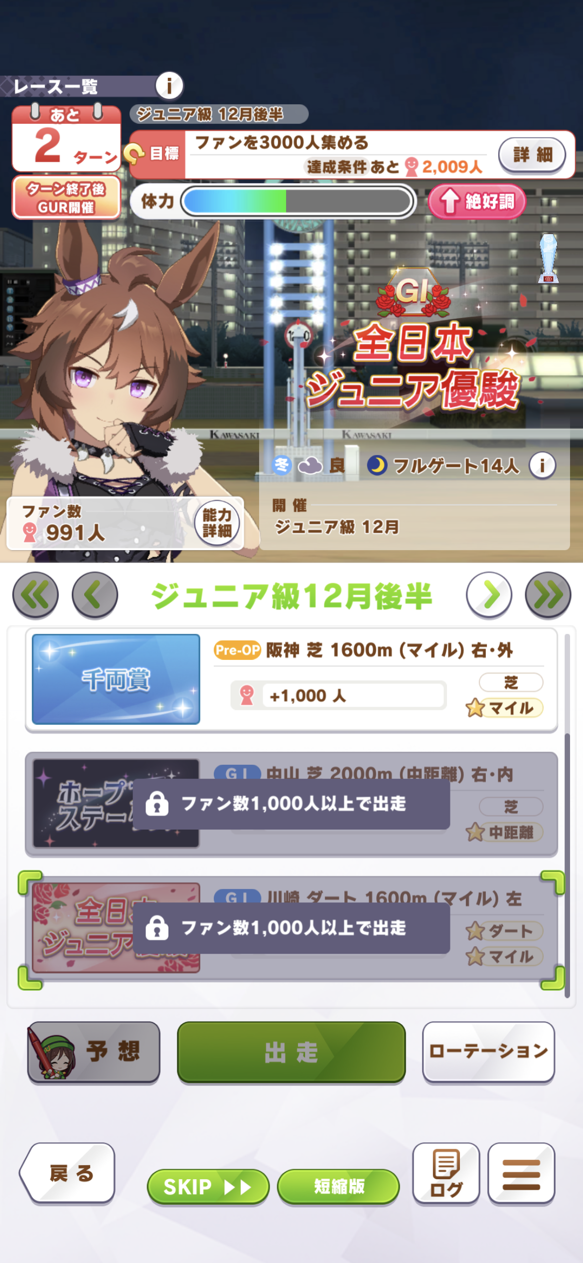 次のレースをローテで予約するときはファン数が足りてるかどうか注意がほしい……