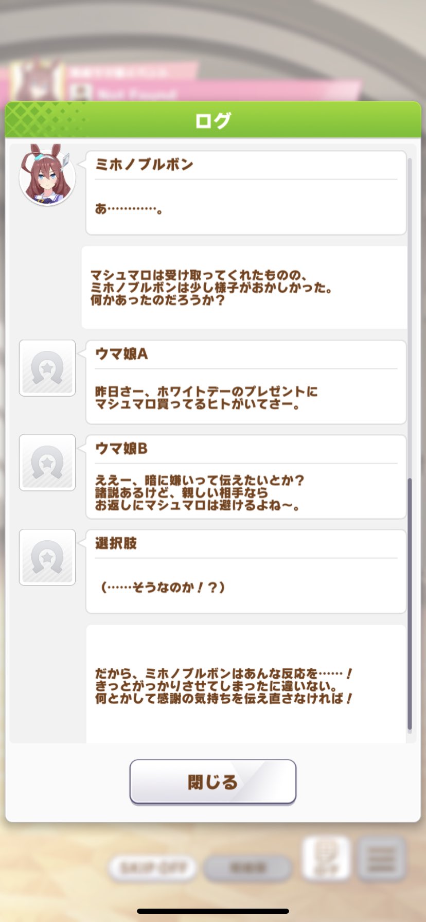 普段の態度が原因でマシュマロを渡されたと勘違いしてしまうナリタタイシン