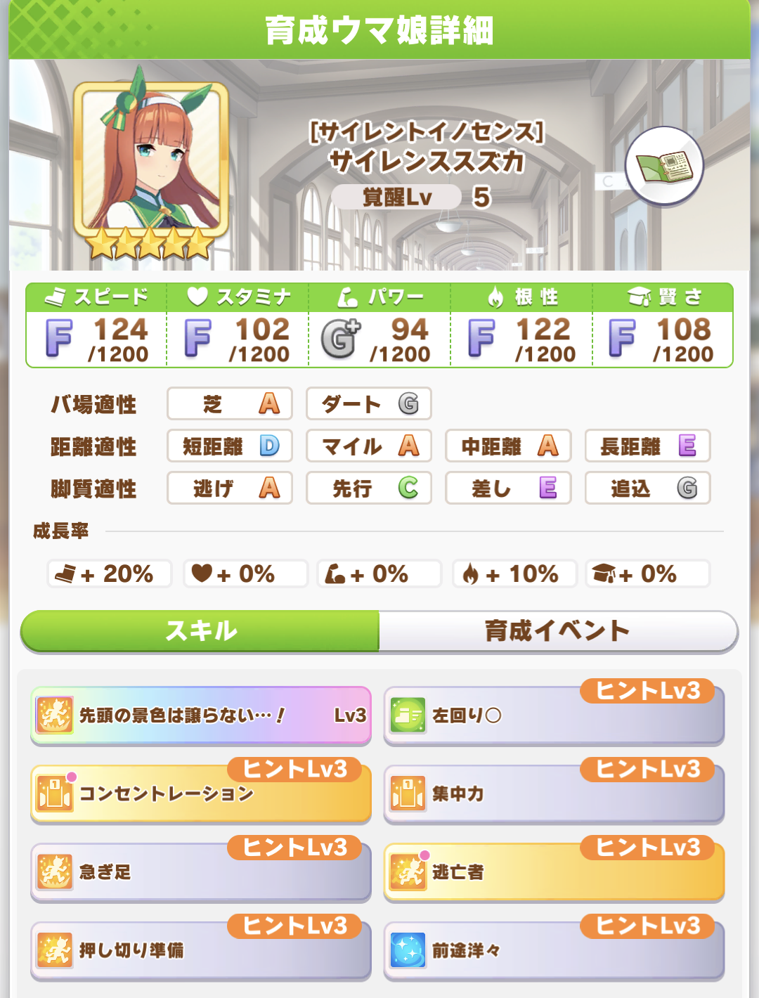 前までは誤差だな程度に思ってたけどラモーヌ前提の場合距離脚質直線コーナー系にLv3振っておくとちょっと序盤得をするようになった