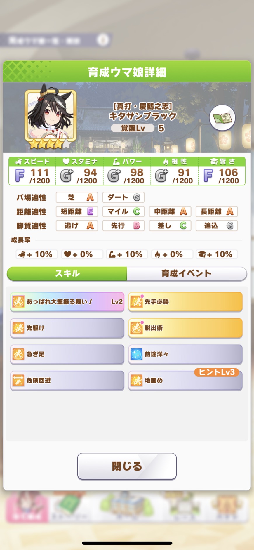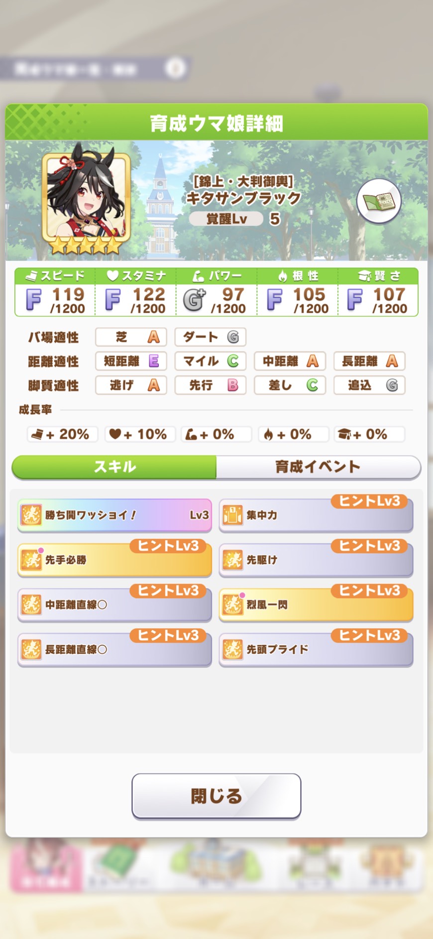 推しの元祖キタちゃんは全ツッパ、あとは地固めはとりあえず全部上げたなぁ