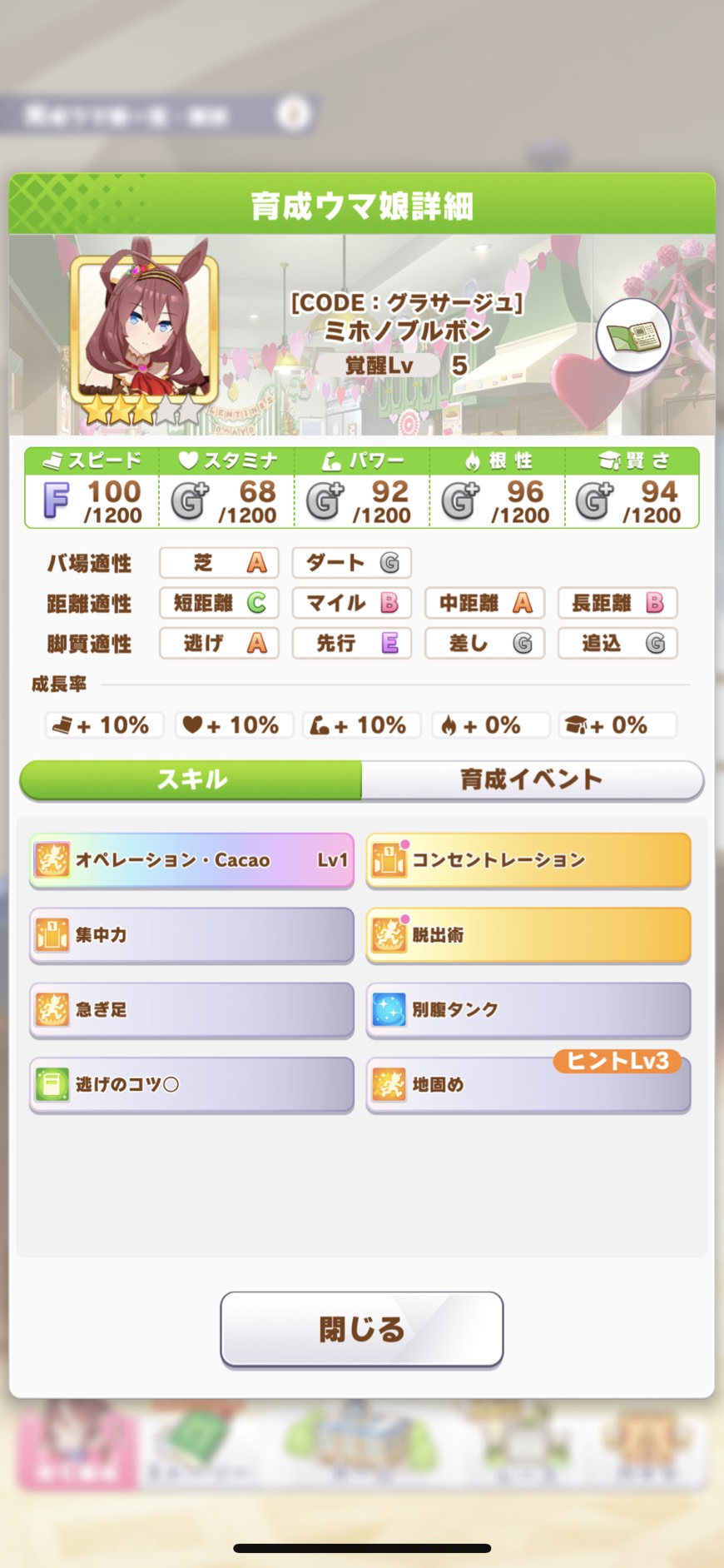 ラモーヌのヒントで貰えない長距離短距離脚質の直線とコーナーは優先度上げ得かもね