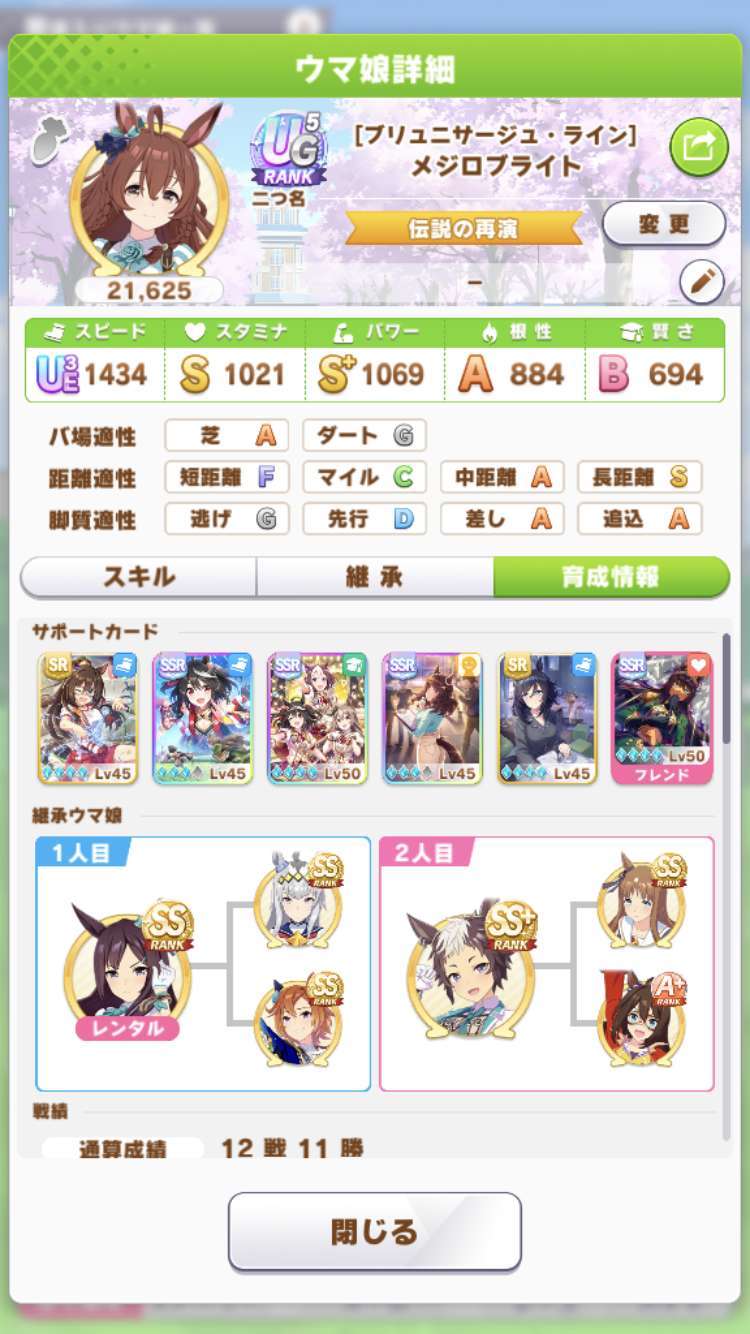 差しも追い込みも金加速サポ持ち持ってないからそこはレンタル調達(ボリクリor着物スイープ)前提なんだけど
