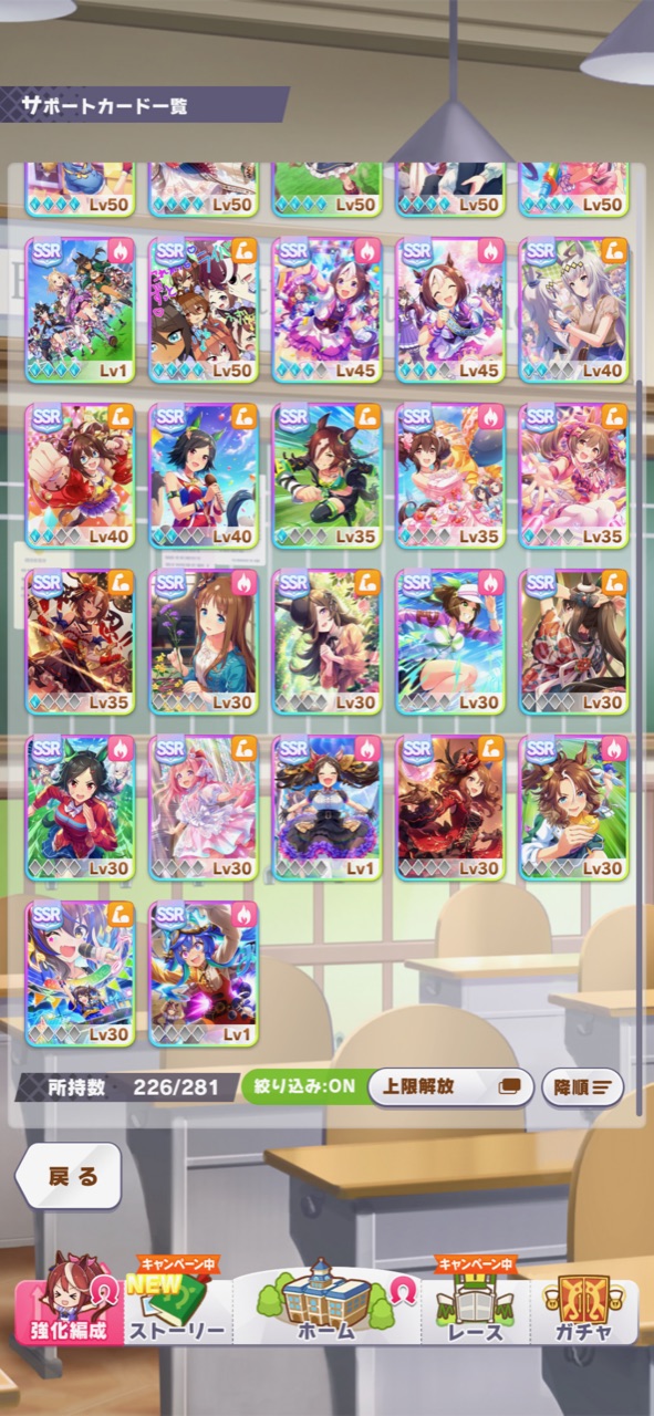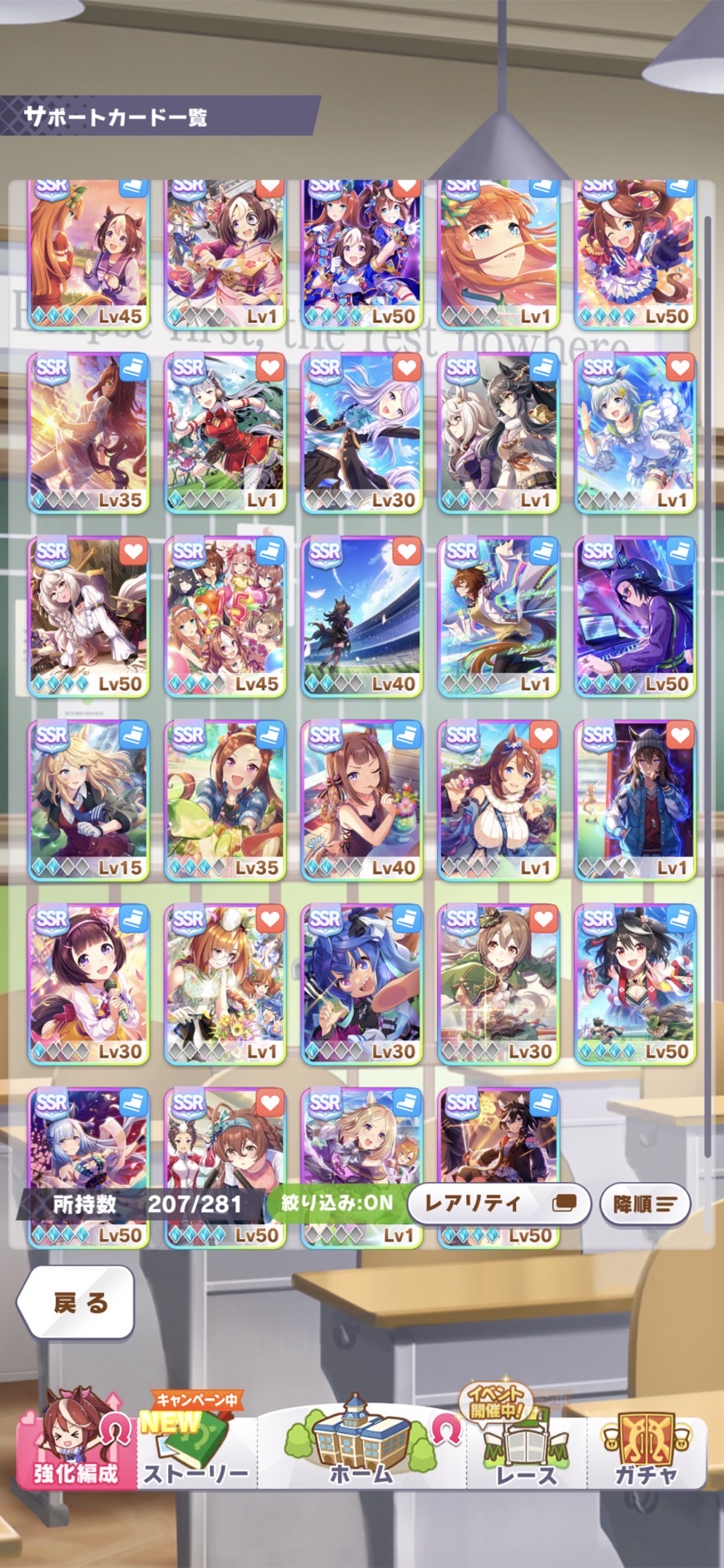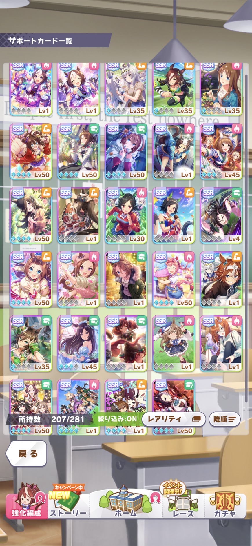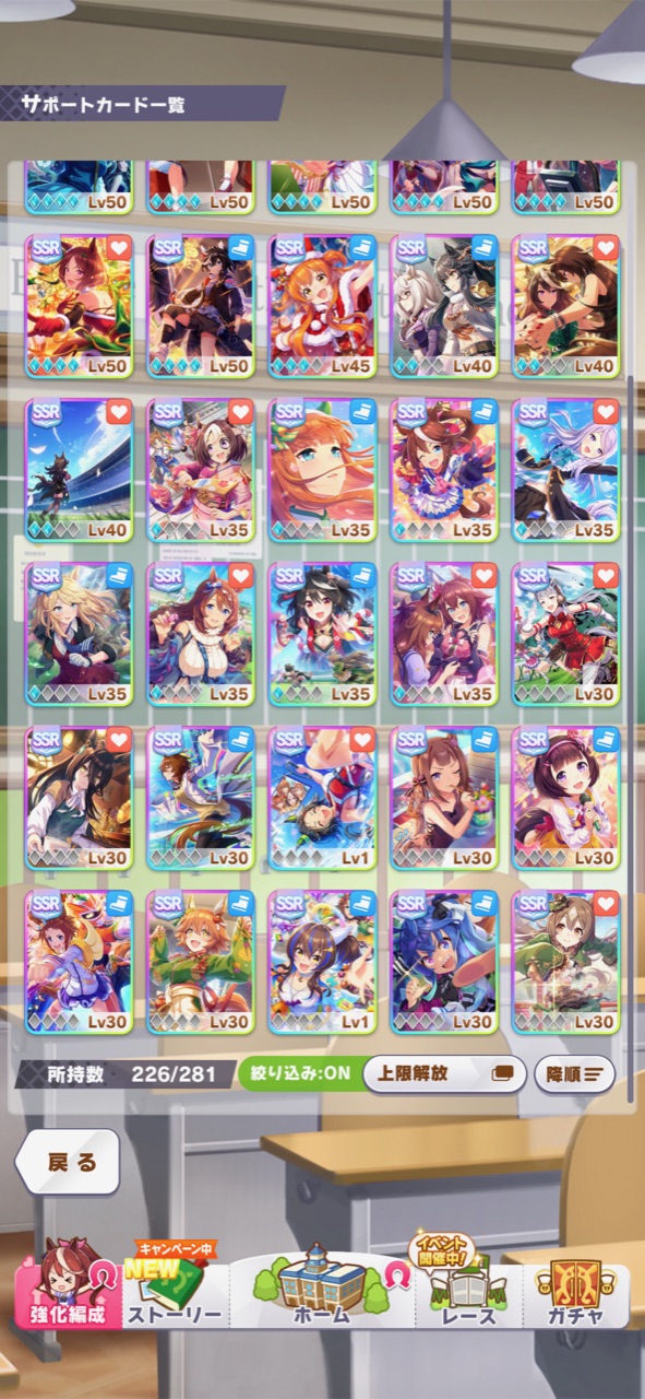 明日の三女神はラモーヌ爆死ンオーしたので引けないので現状持ってるサポカを強化しようと思います