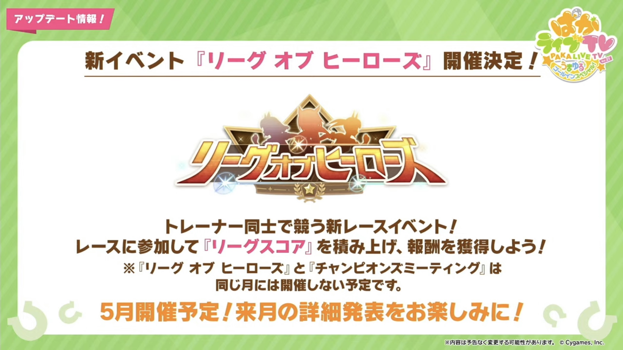 幅広いトレーナーが楽しめるということだけを重視したところウマ娘版格闘王への道みたいなものは想像できた。連続勝利するごとに運営製作の相手ウマ娘が強くなり、20連勝ぐらいしたら最大報酬みたいな感じ。