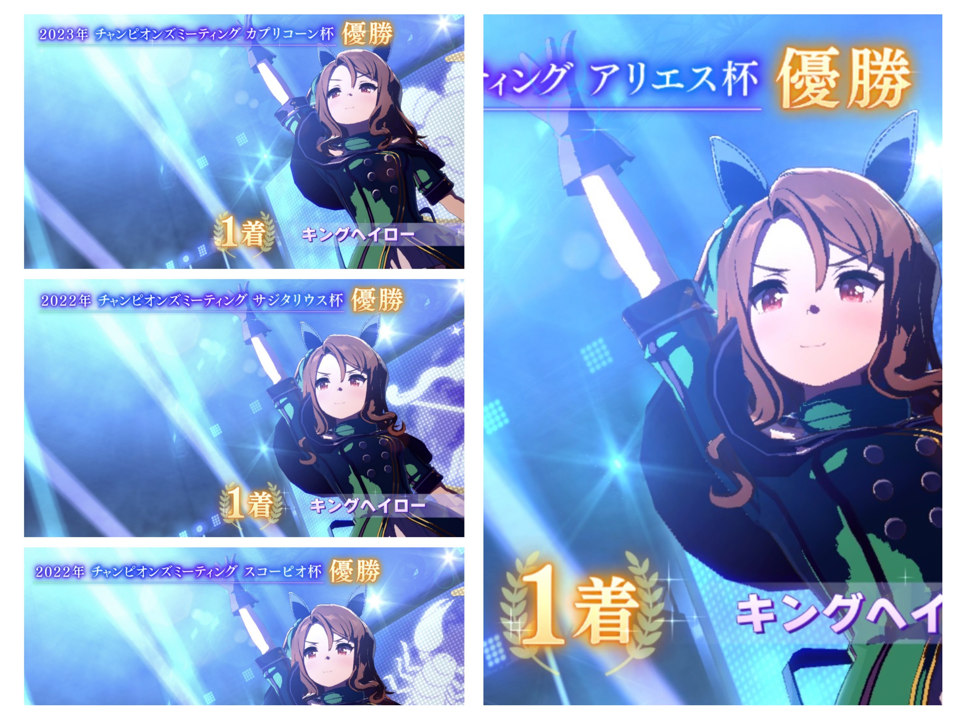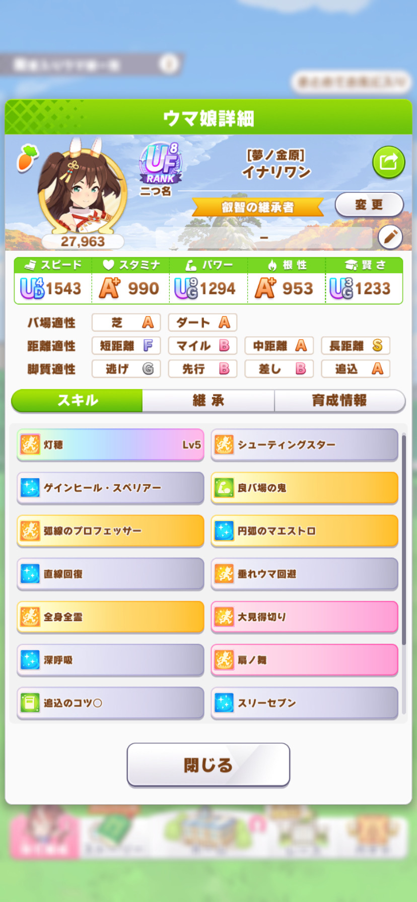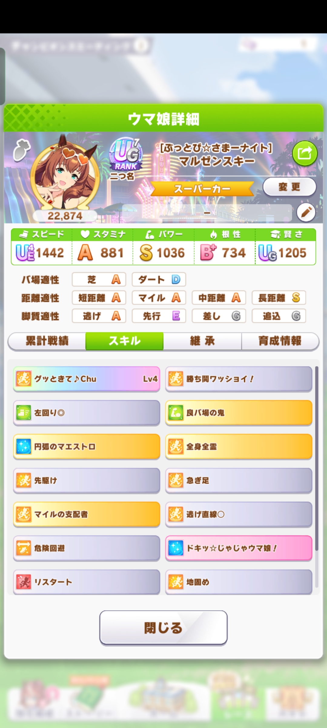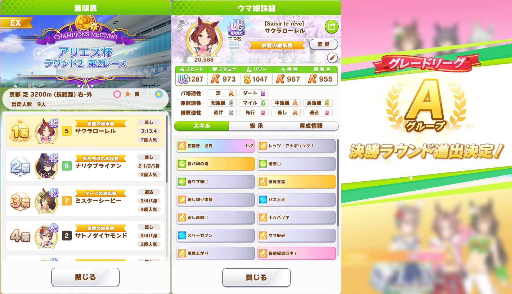 戦績少し少なめなのは3日目で仕切り直したやつだから(1,2日目はステ控えめ芝S長距離Sのブライト
