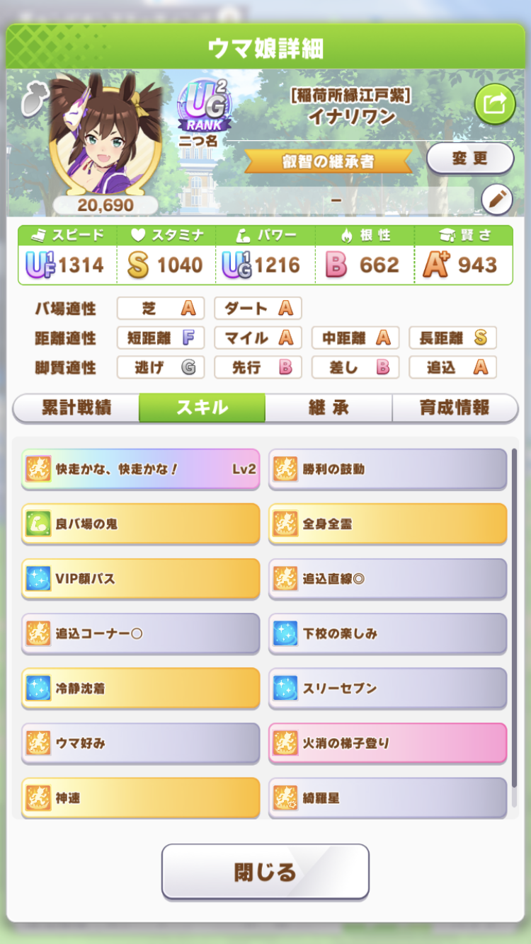 逆に固有最速発動しちゃってスパート入る前に効果切れちゃったりで沈むこと多く見た目のわりに博打度高い娘だったけど
