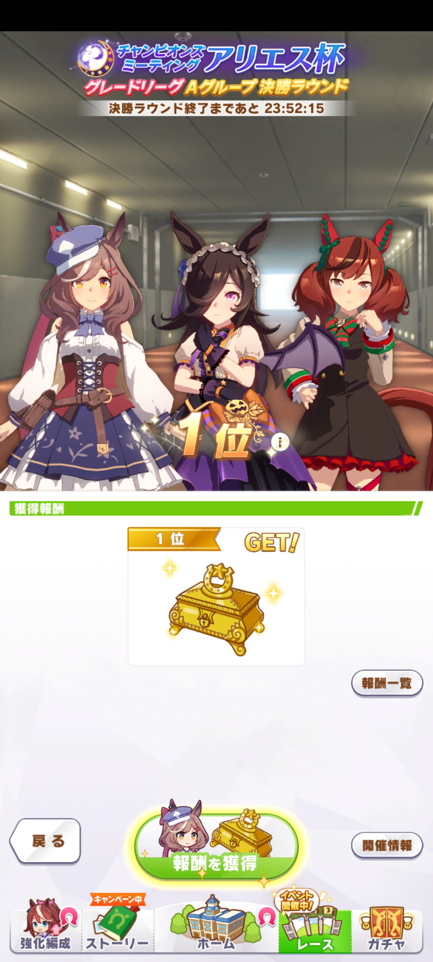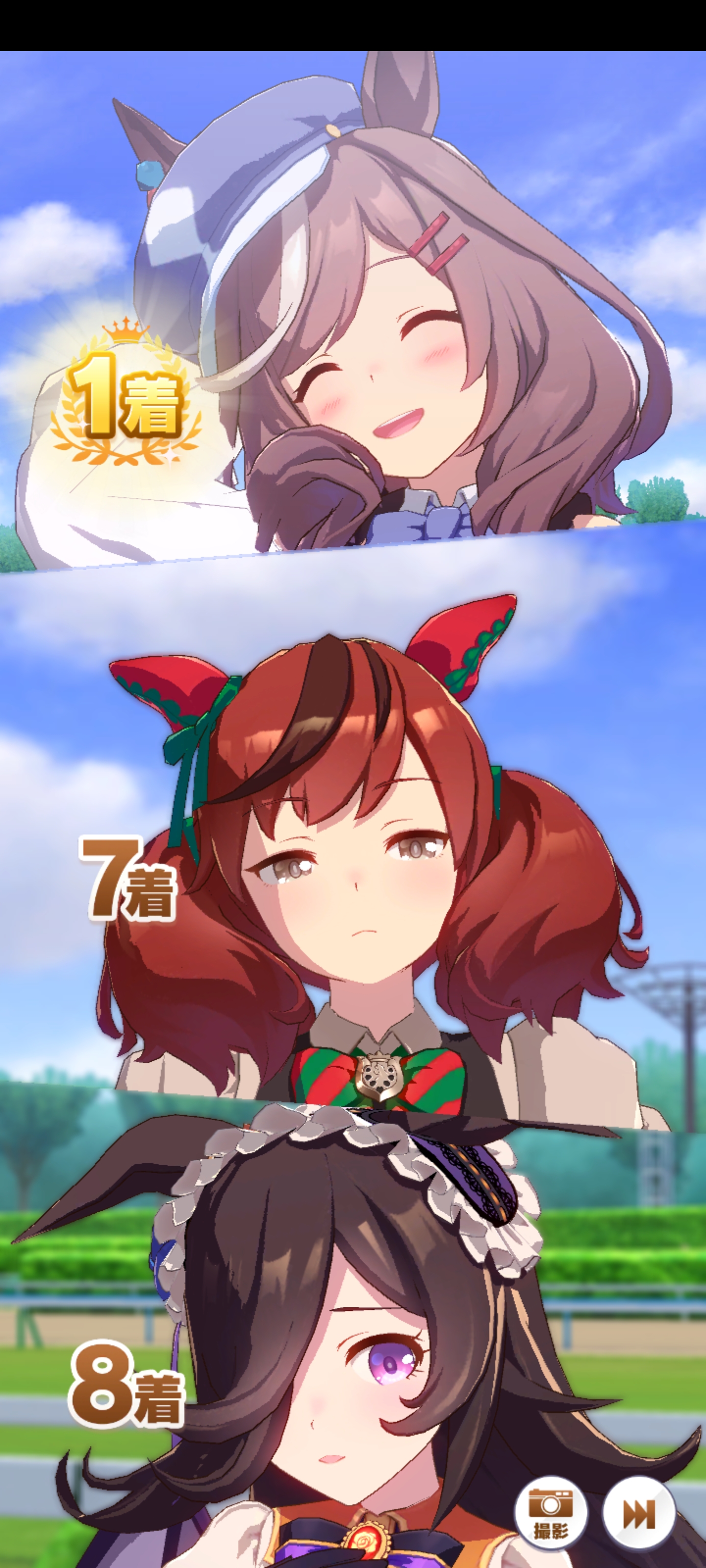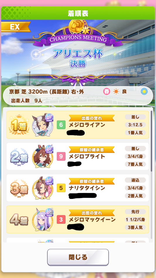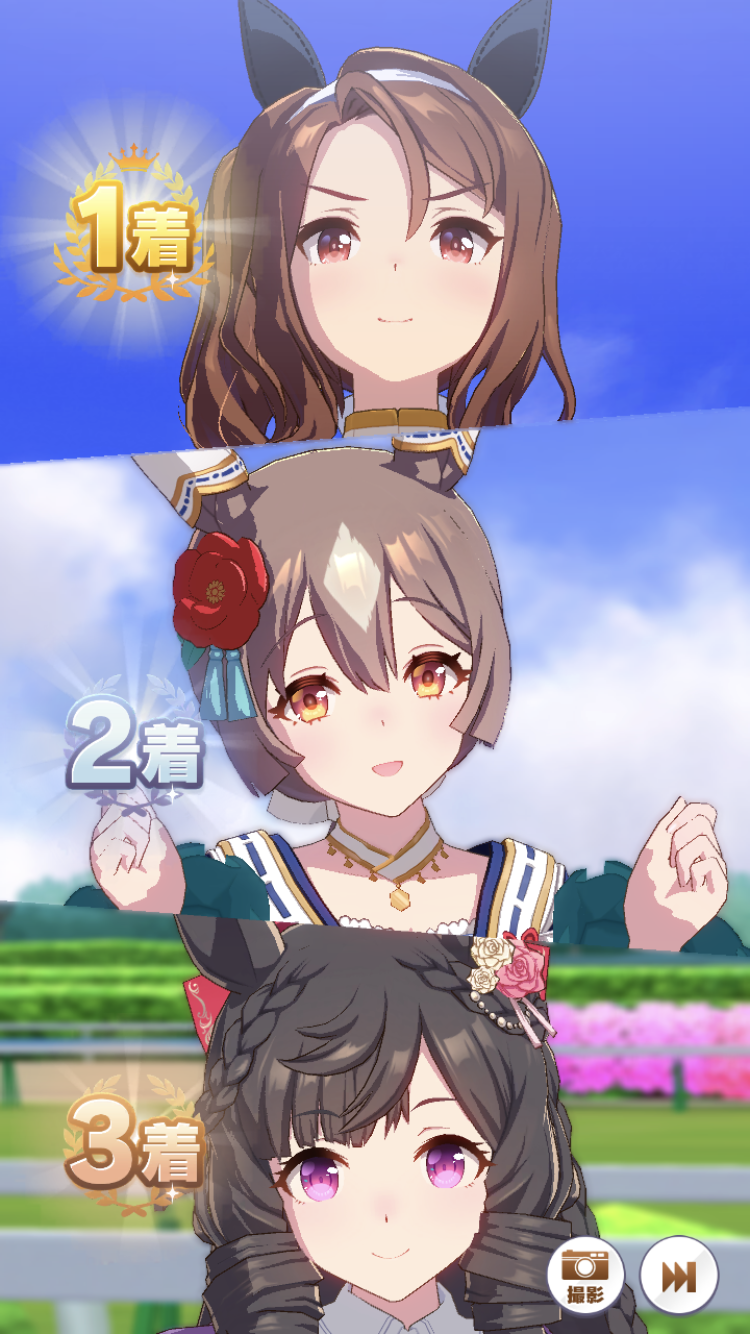 逃げ先行に偏ったりなぜかデバフ組が健闘しすぎて肝心のブライトが1~3位、8~9位キープしちゃって固有発動が遅すぎたり