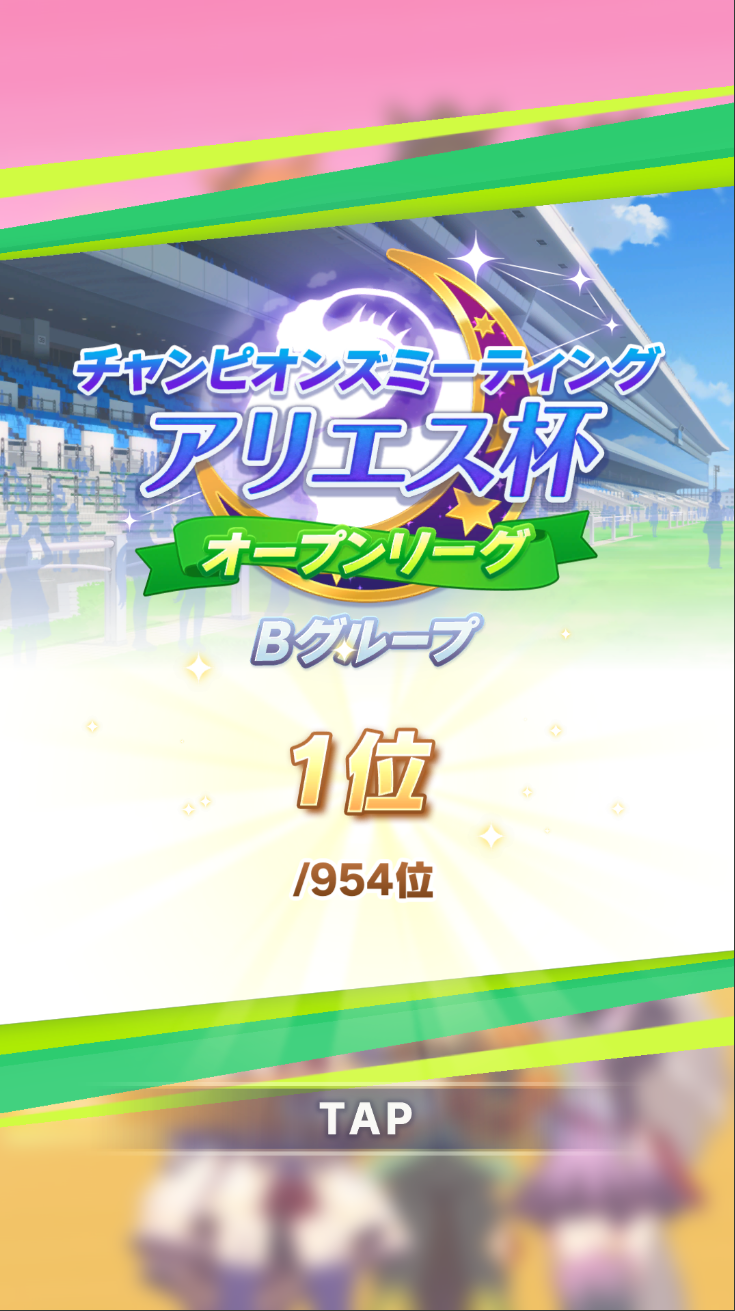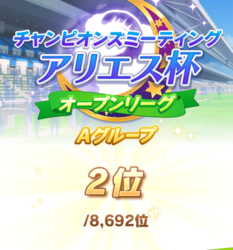 アドバイスのおかげで差しブライト単騎(他2名デバフ)で勝率40%、Aグループ優勝いけたご報告にきた