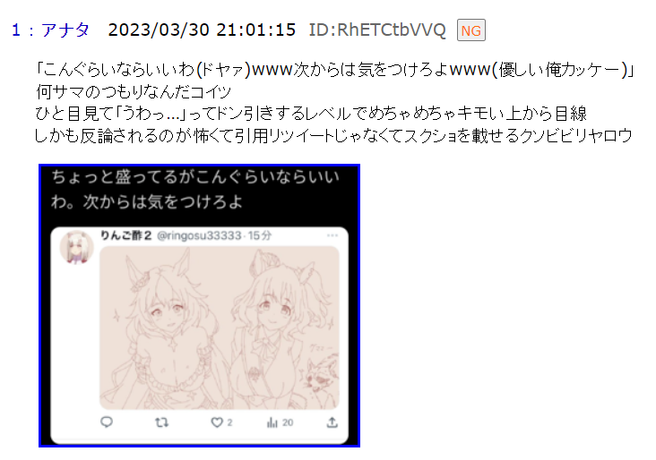 自分の名前とID載せて承認欲求見え見えな方が気持ち悪いですわ