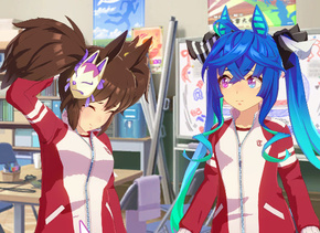 イナリ「おうターボ!さっきな、ダンナが海外留学するってえ話で、『イナリと一緒じゃないと行かない』なんて言われちまって……へへっ、ダンナの出世を邪魔しちまったみてえで申し訳ねえってのもあるんだが、何よりこれからもダンナと一緒に居られる嬉しさの方が大きくてな。やっぱり、ダンナの出世を邪魔しちまったぶんは、責任取らないとダメだよなあ……いつも一緒に出かけてんのを、その、デートってやつにしてみるか。だって、トゥインクルシリーズを走ってる時はずっと一緒にいたけどよ、ダンナに女っ気があるのも、彼女みてえな人がいるのも見たことねえし、だったらダンナに彼女ができるまでの間、あたしが恋人になってやろうと思ってね。とは言っても、一緒に出かけたり、一緒に休みの日を過ごしたり、お互いのいい所を言い合ったり、キスしたり、いつもとあんまり変わらない気がしてねえ。まったく、恋愛ってやつは大変だぜ。そんで、ダンナにデートで行きてえところが無いか聞いたんだけどよ、今度の休みは雨が降る予報ってえんで、ダンナの家に行くことになったわけよ。この前泊った時より、ダンナの部屋が汚くなってないといいんだがなあ。まあ、ダンナと一緒に居ればどこにいたって楽しいし、今度の休みが楽しみだぜ。なあターボ!」