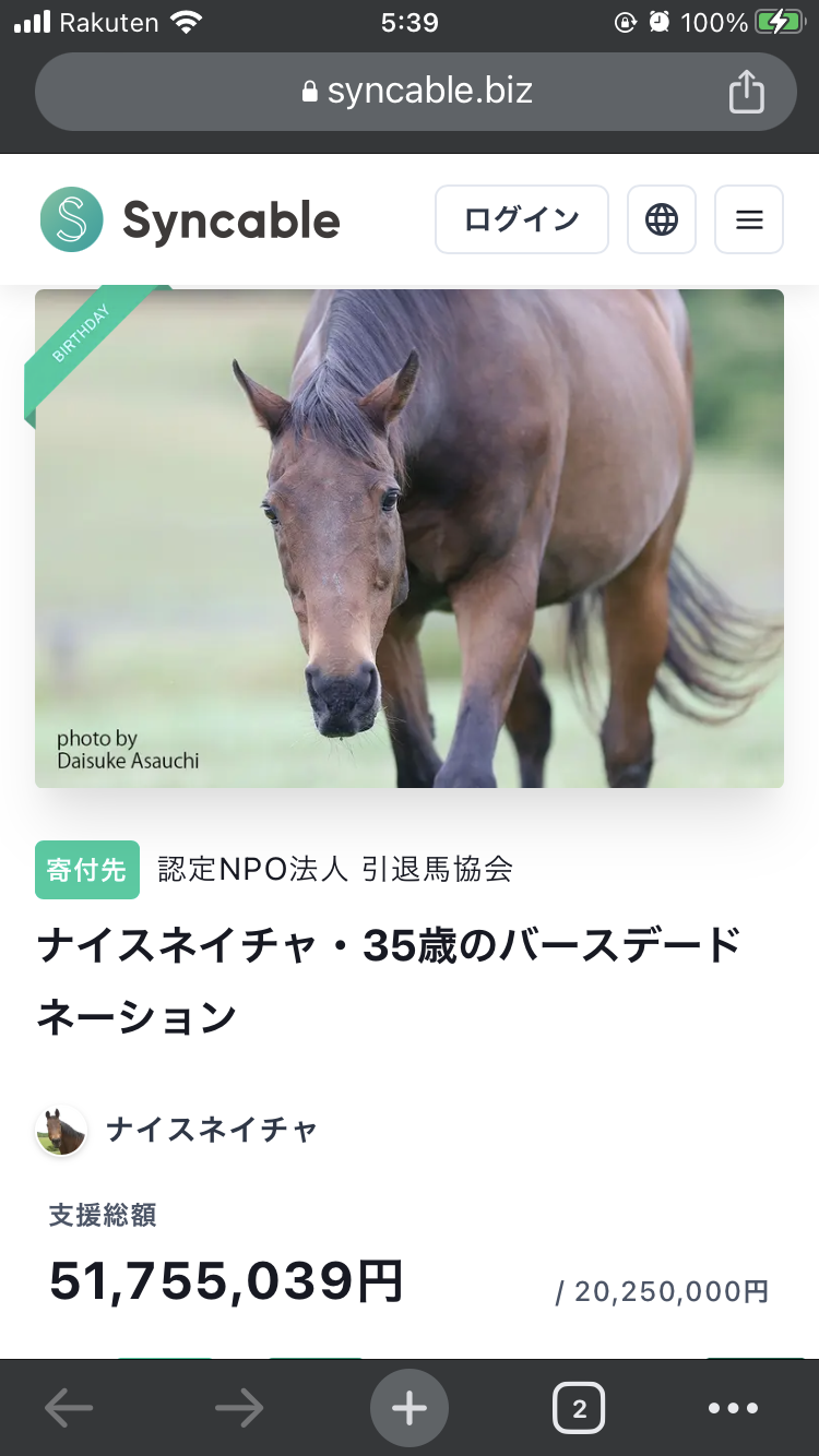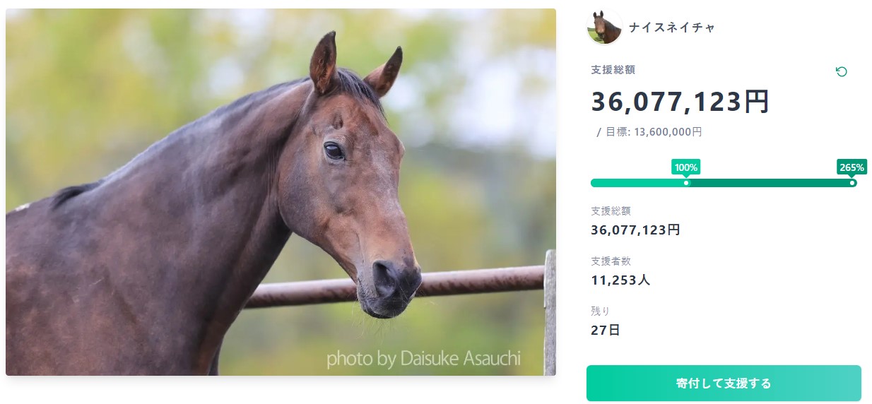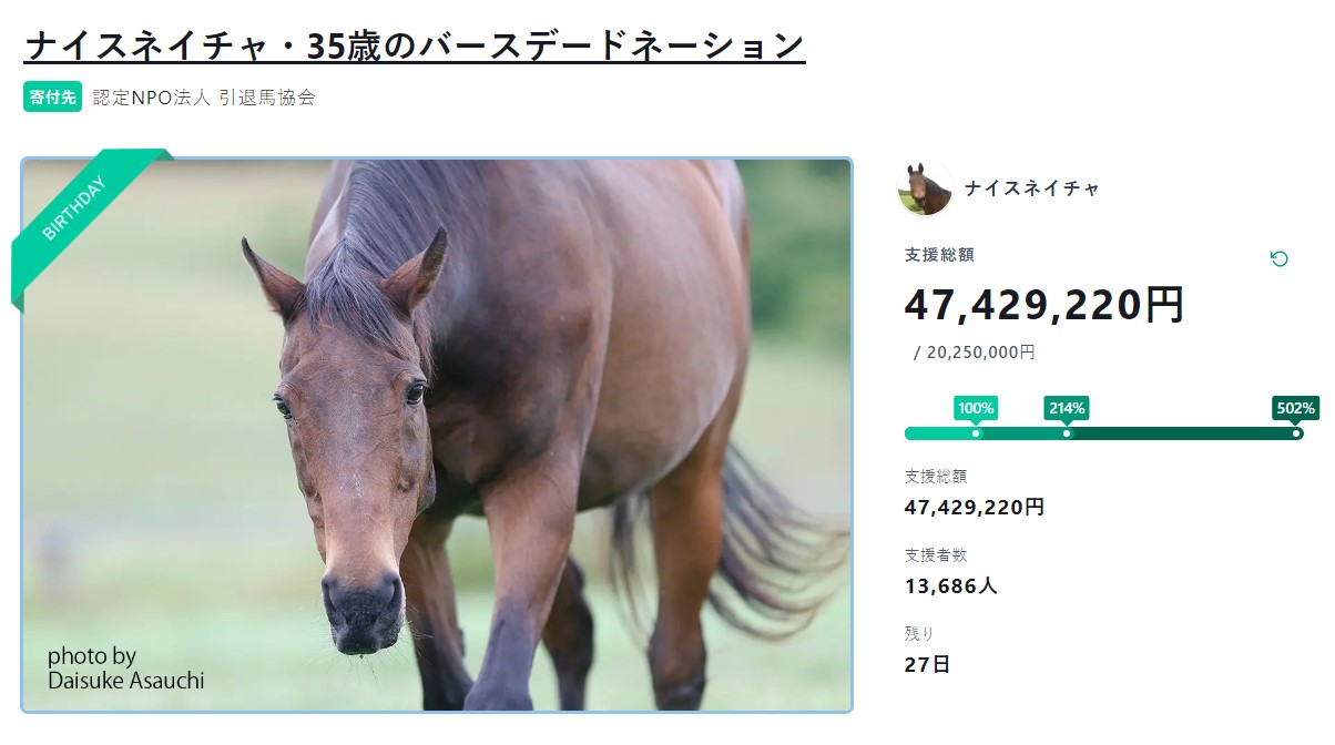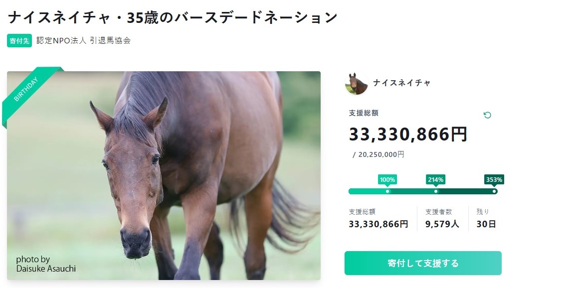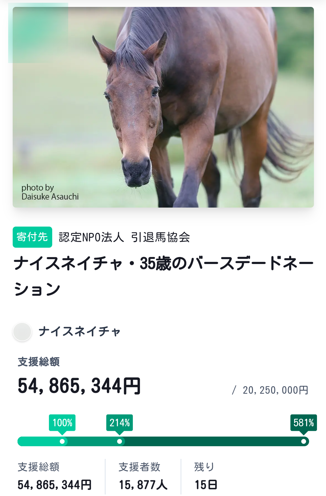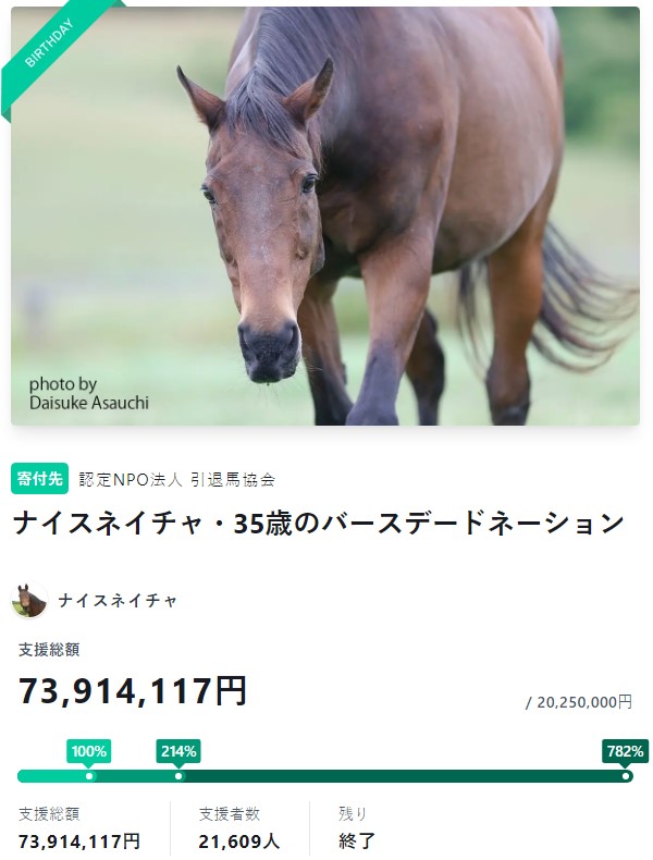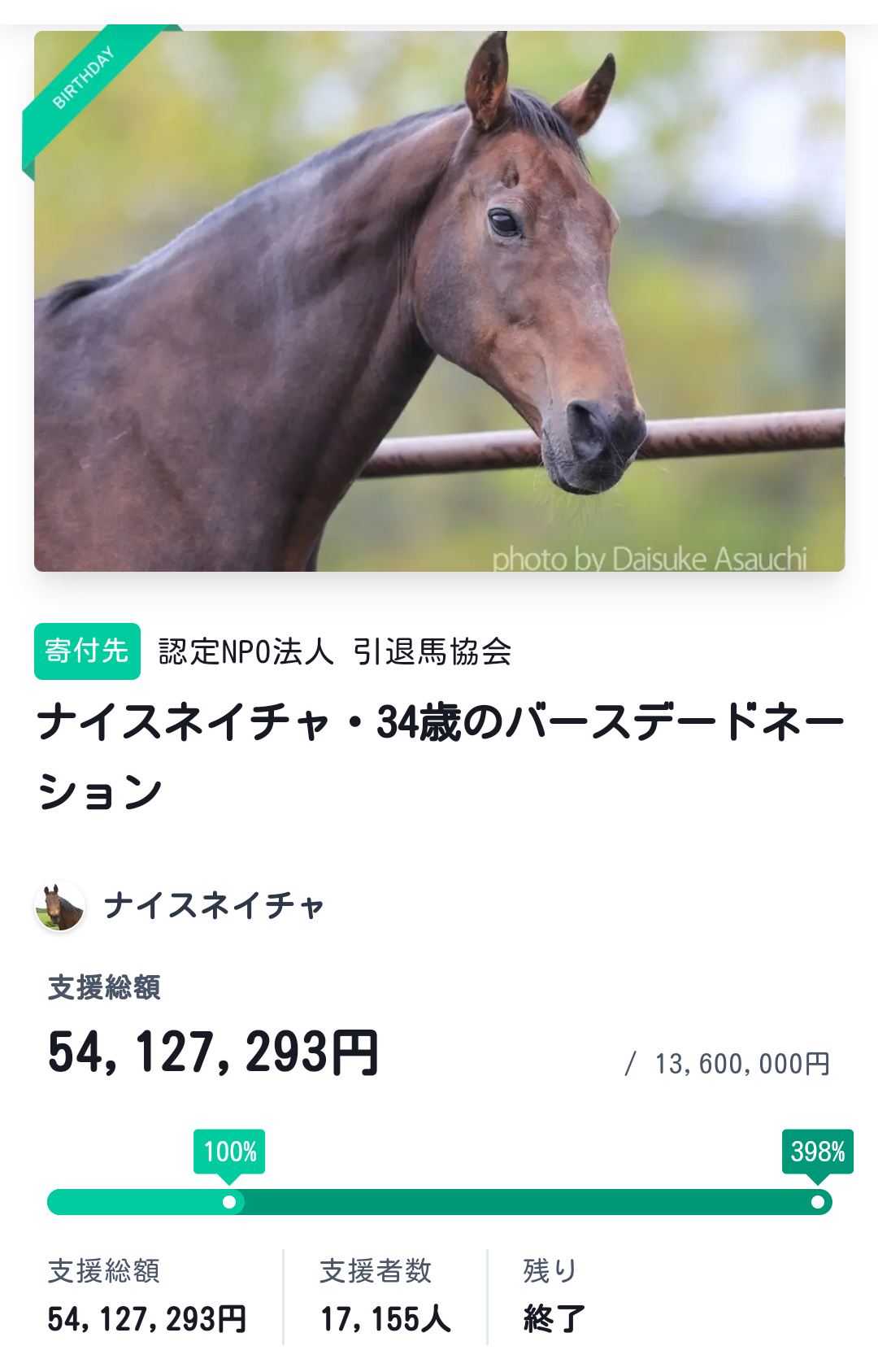 ネイチャのサイト入れなかったから先にアドマイヤジャパンくんに寄付してきた