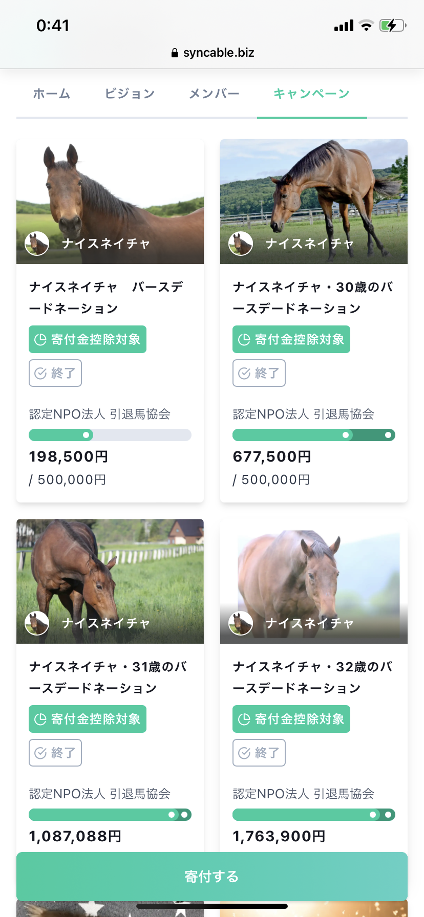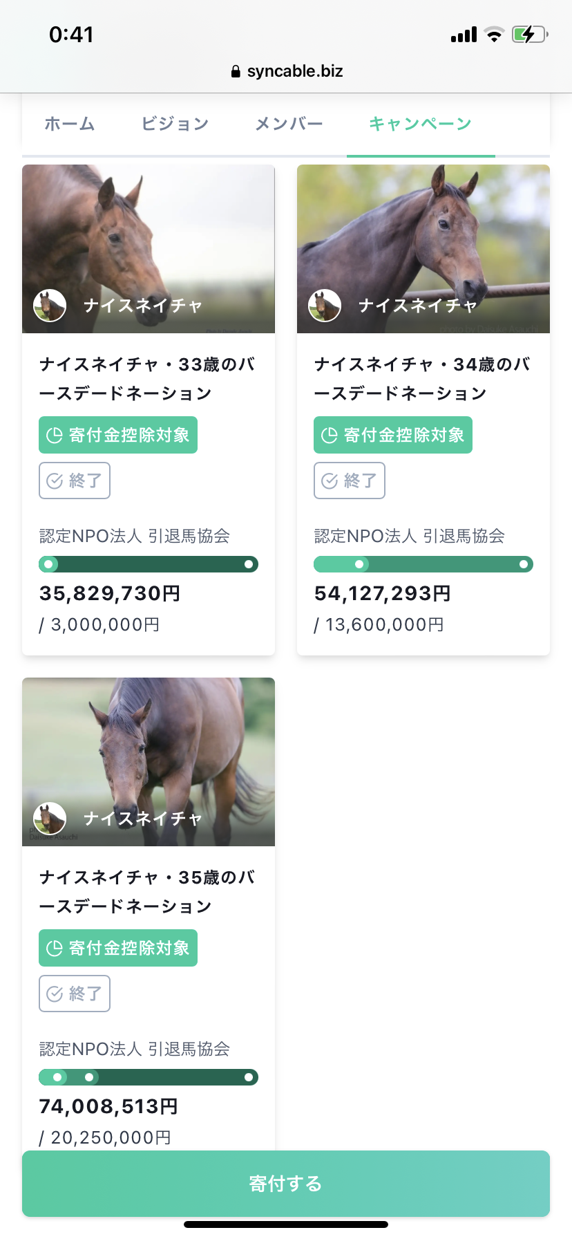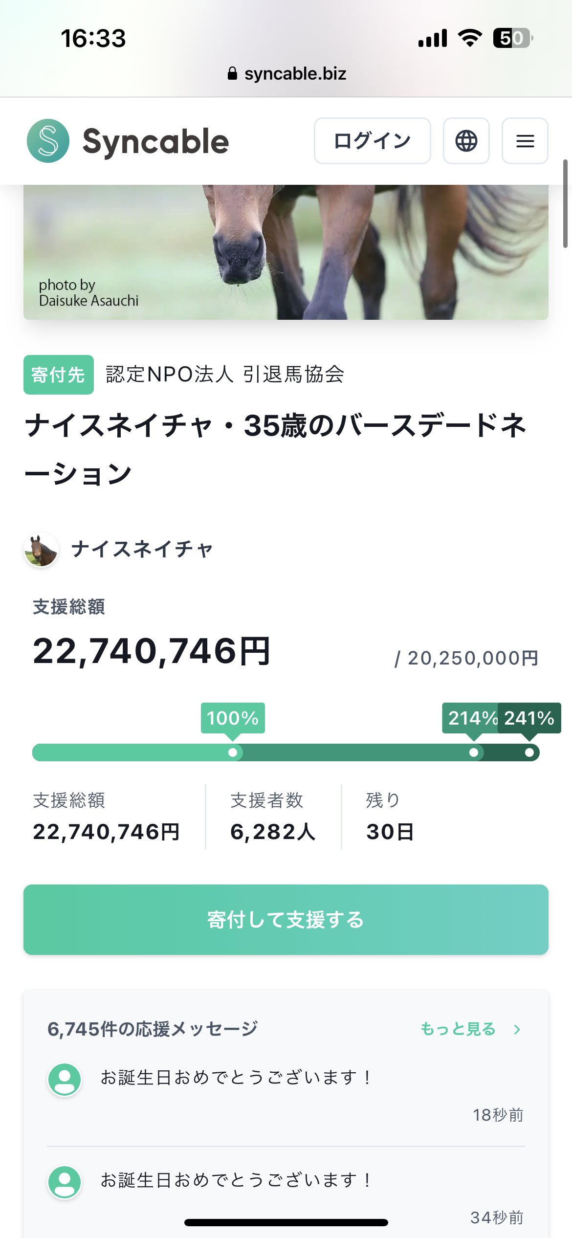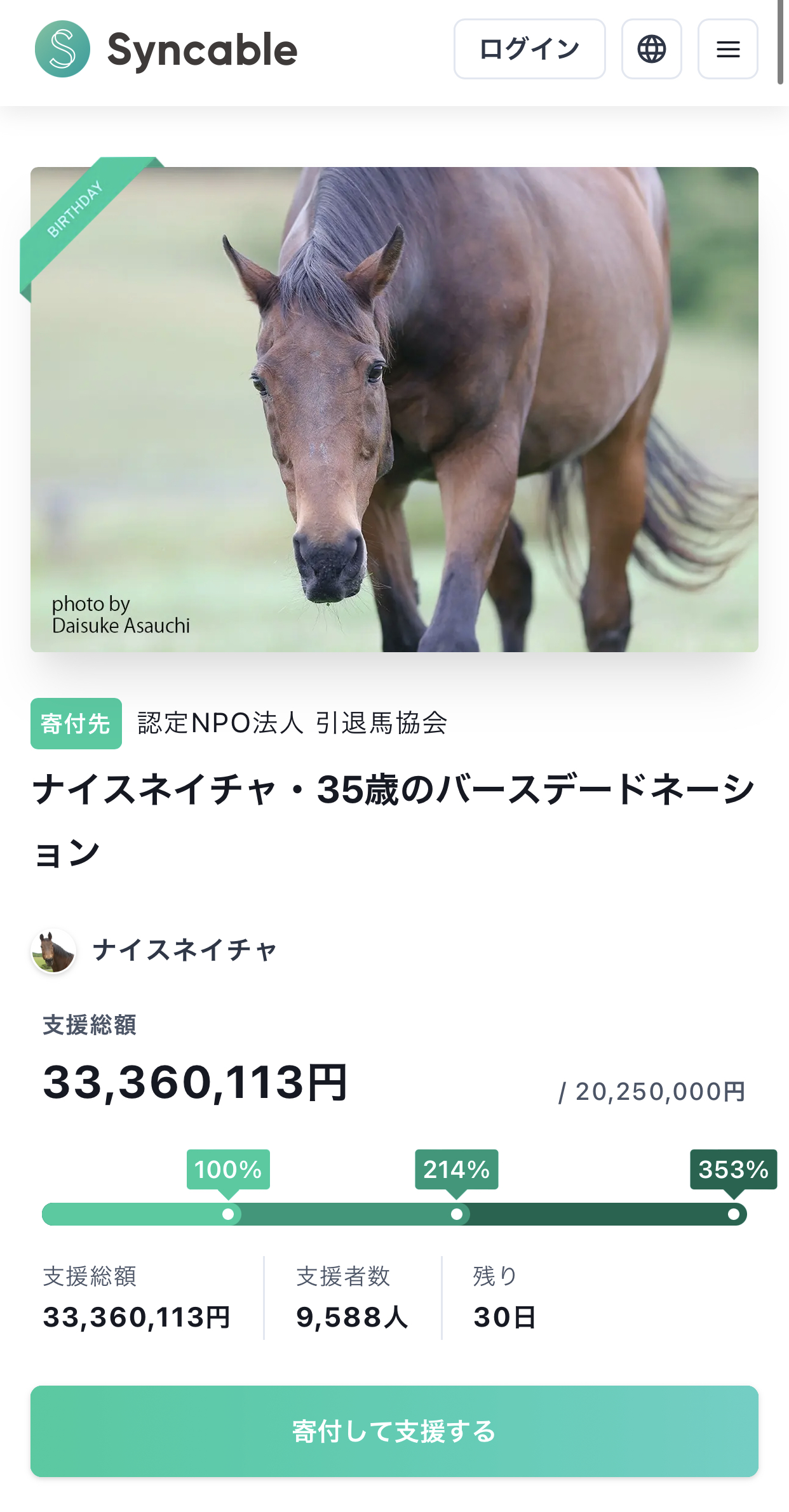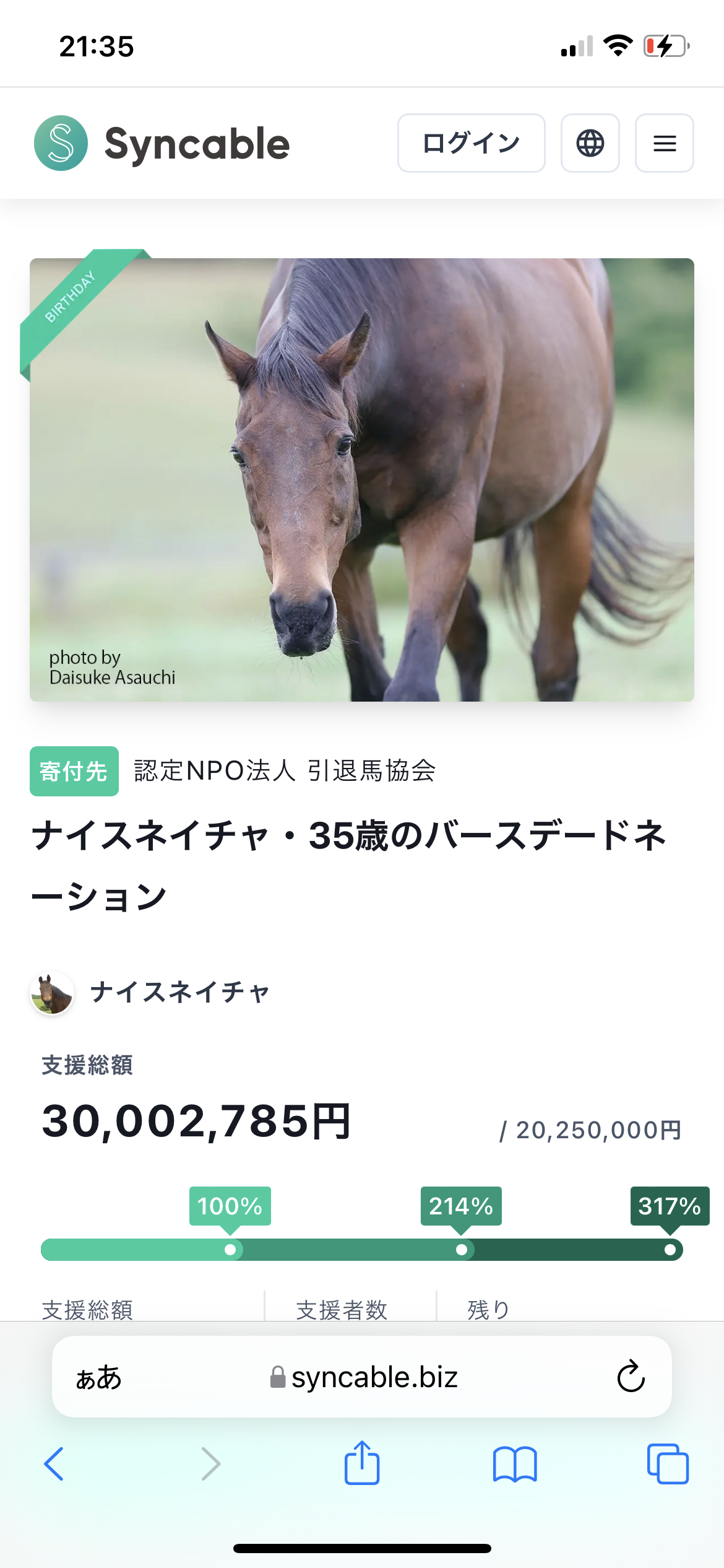 ネイチャのサイト入れなかったから先にアドマイヤジャパンくんに寄付してきた