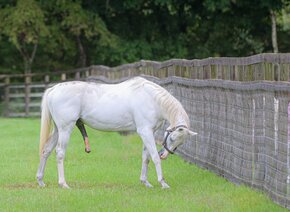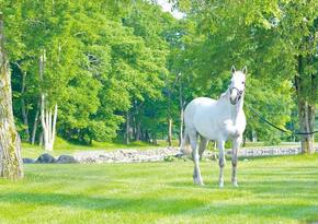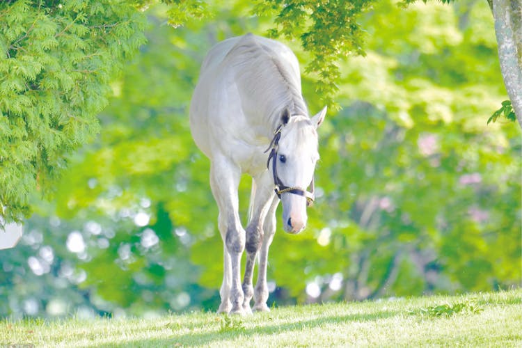 ジャスさん、とってもとっても食欲旺盛な芦毛があそこにいるよ!!
