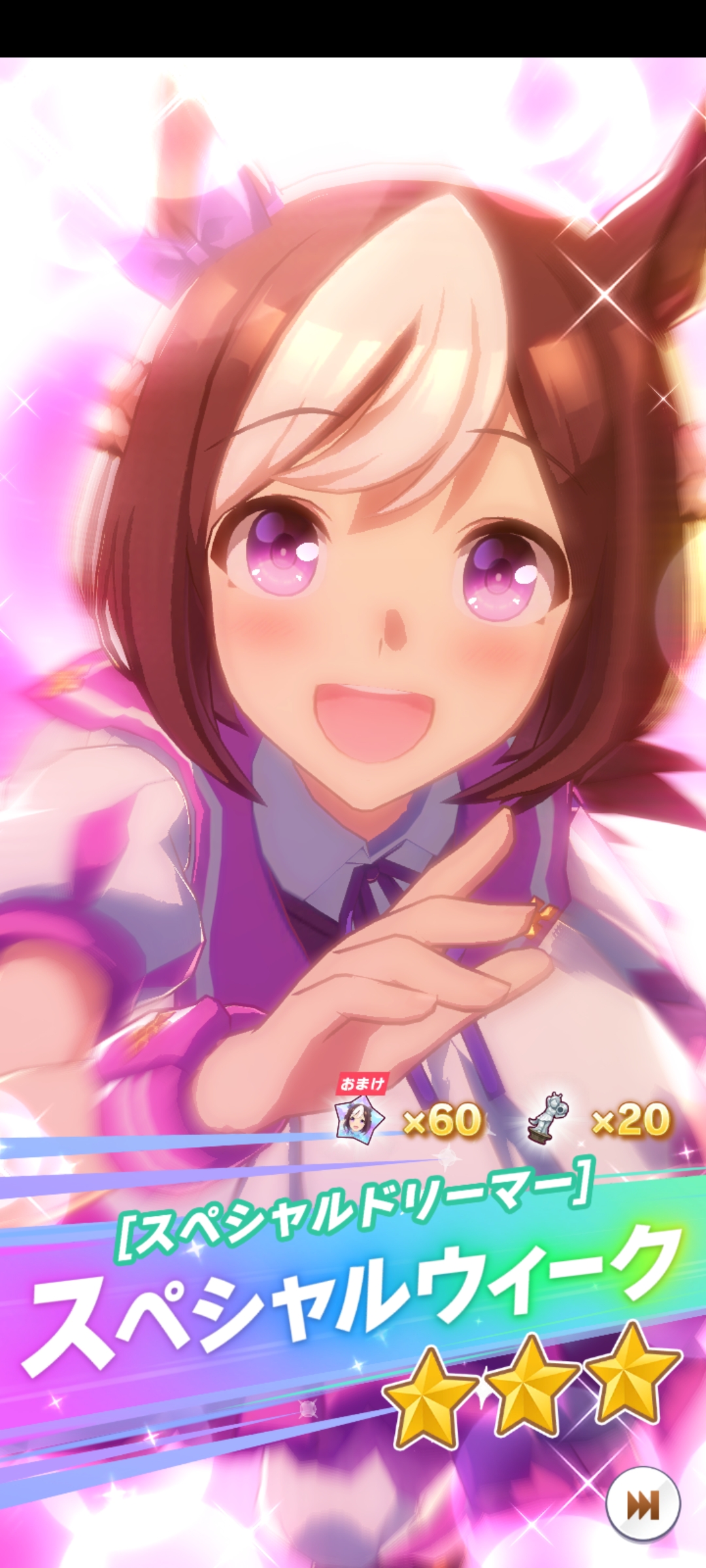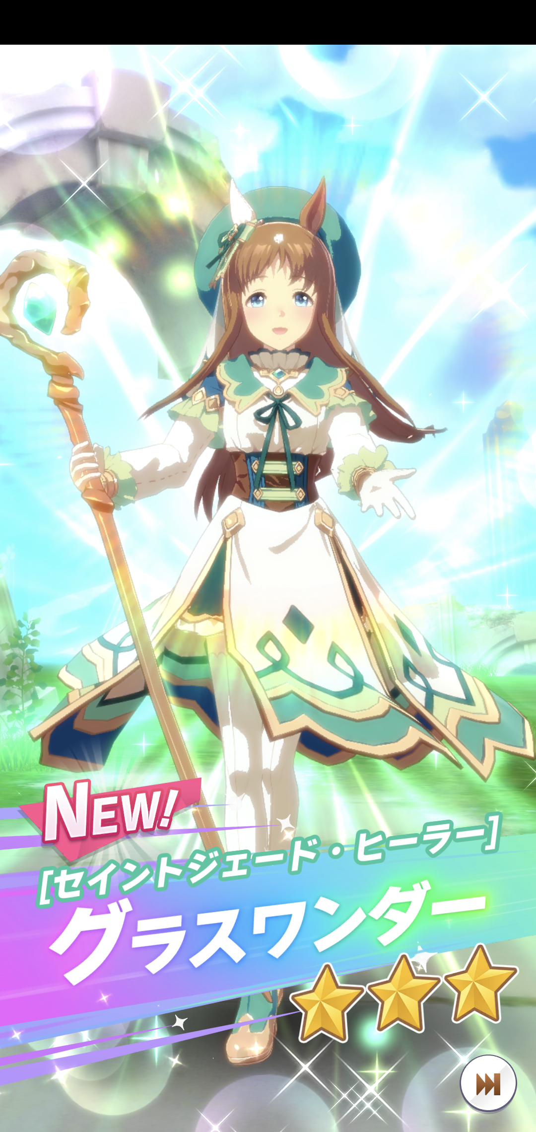 ネオユニヴァース流しながらガチャ回したら来た!なんか体の一部分でかい気がするけど長髪萌え袖だし本物だな!