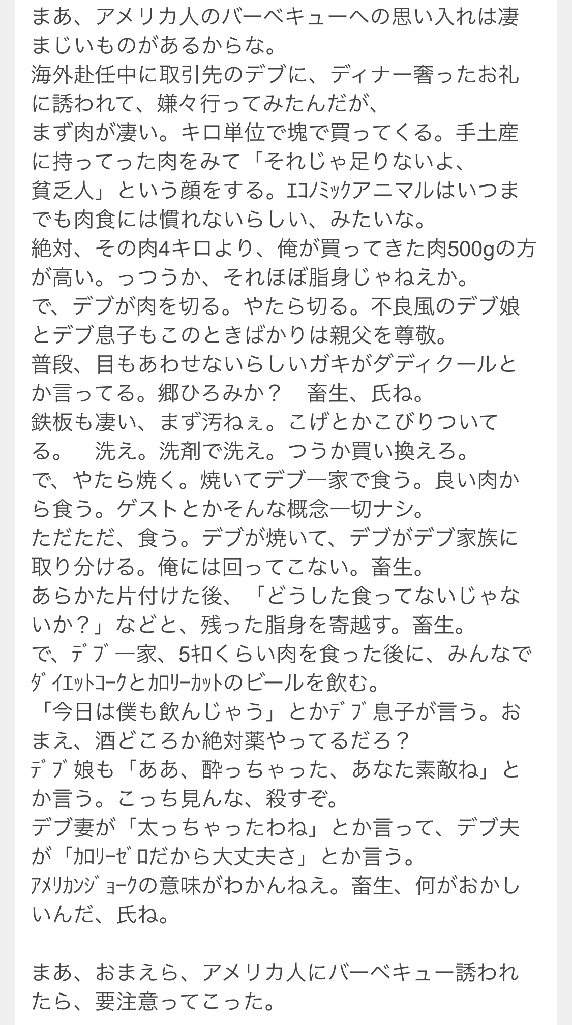 アメリカ人のBBQって日本人が日曜日に公園や河原でやるようなチンケな焼き肉じゃないからな