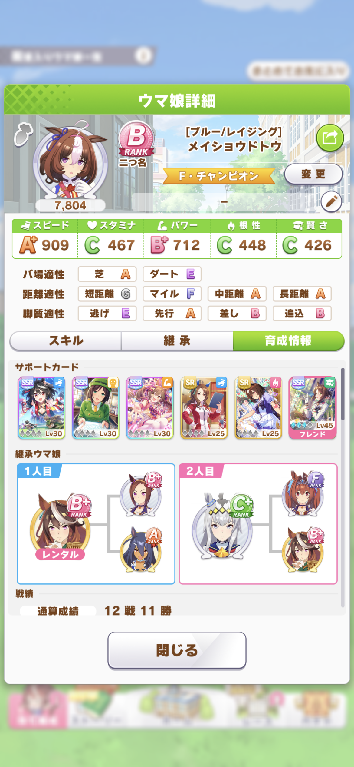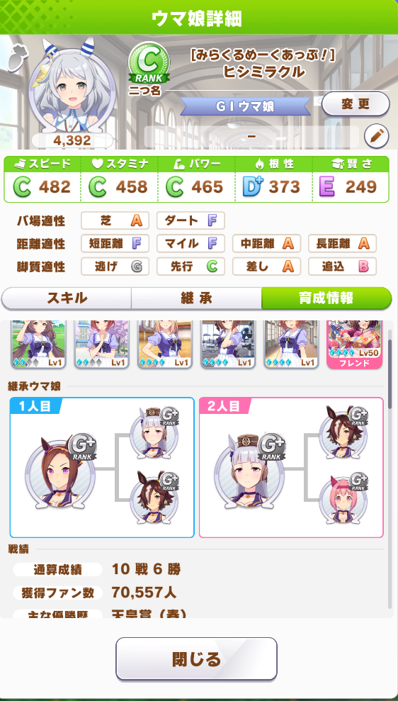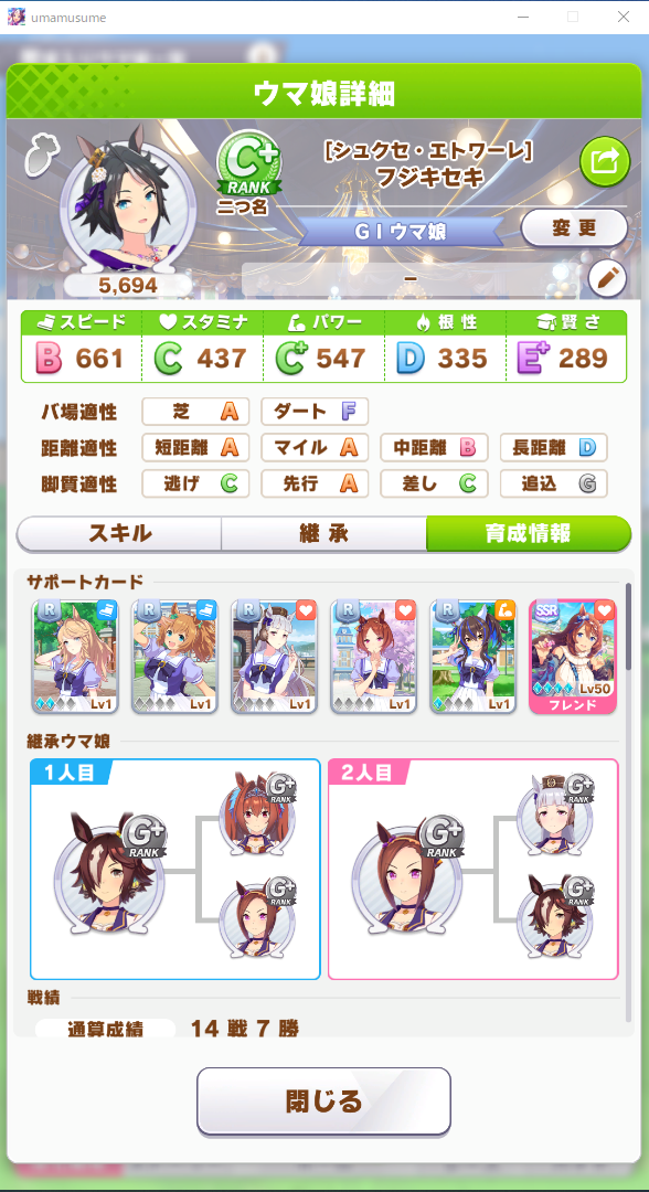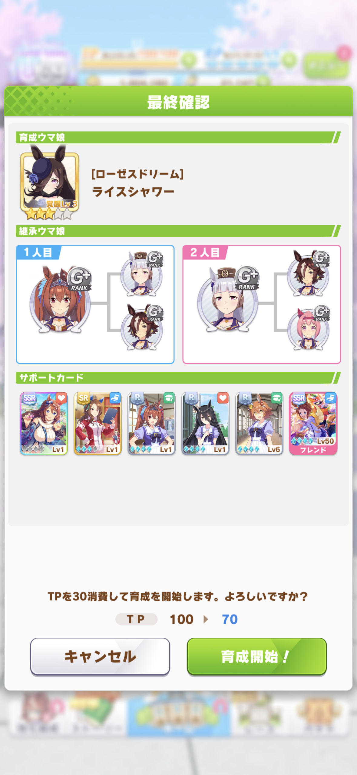 シナリオはURA、継承は初期メンバー、サポカはRの低レベル(ただしフレンドのみ本気可)