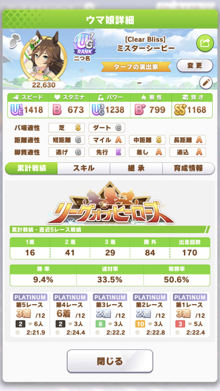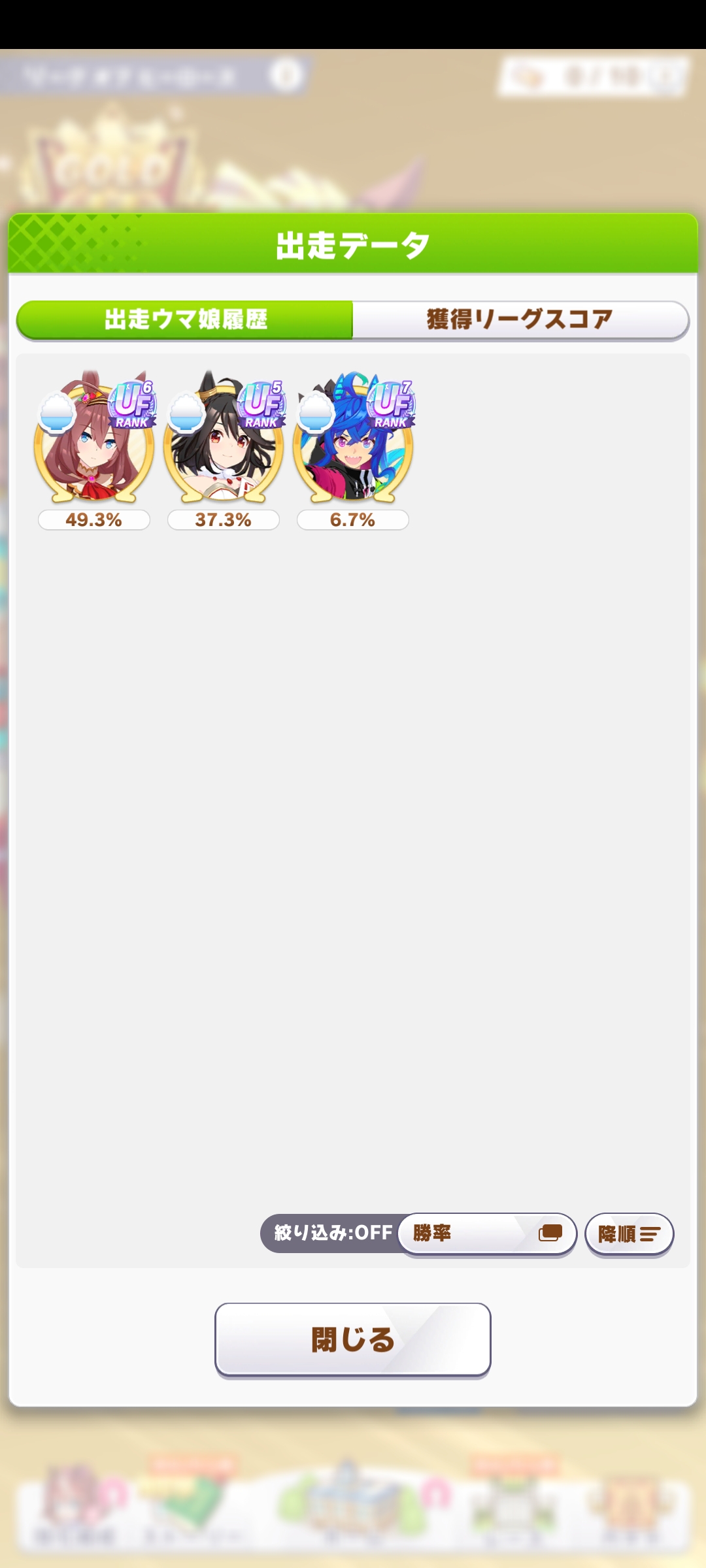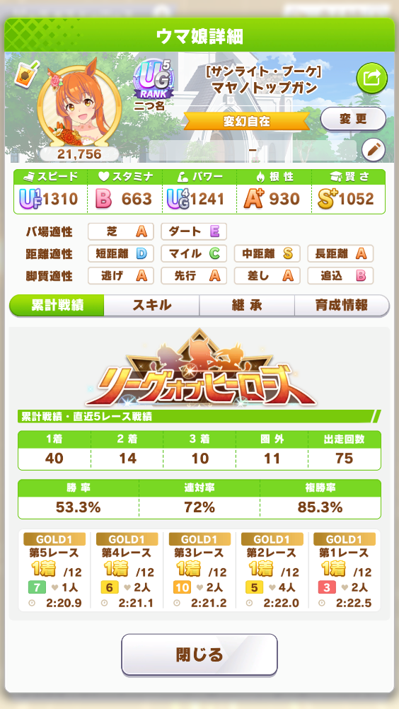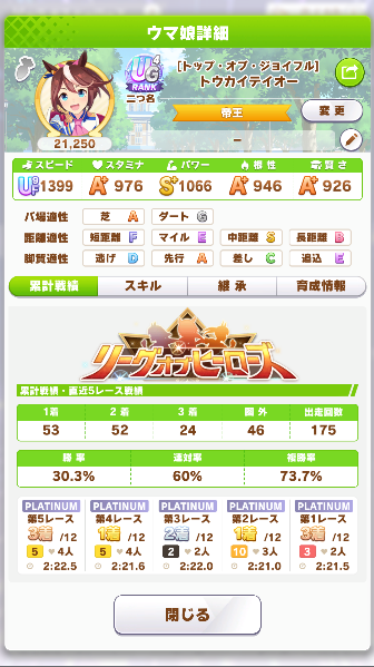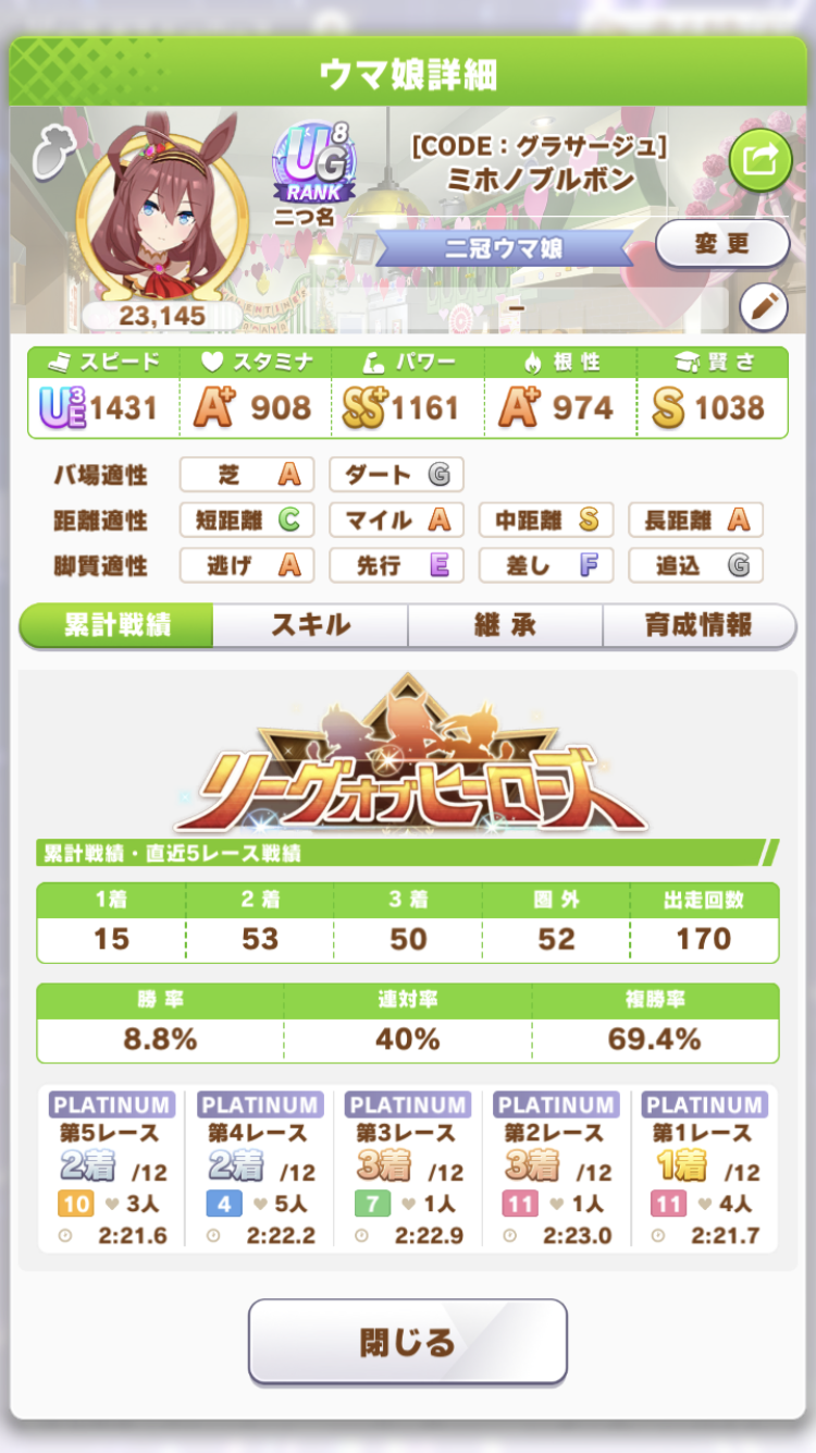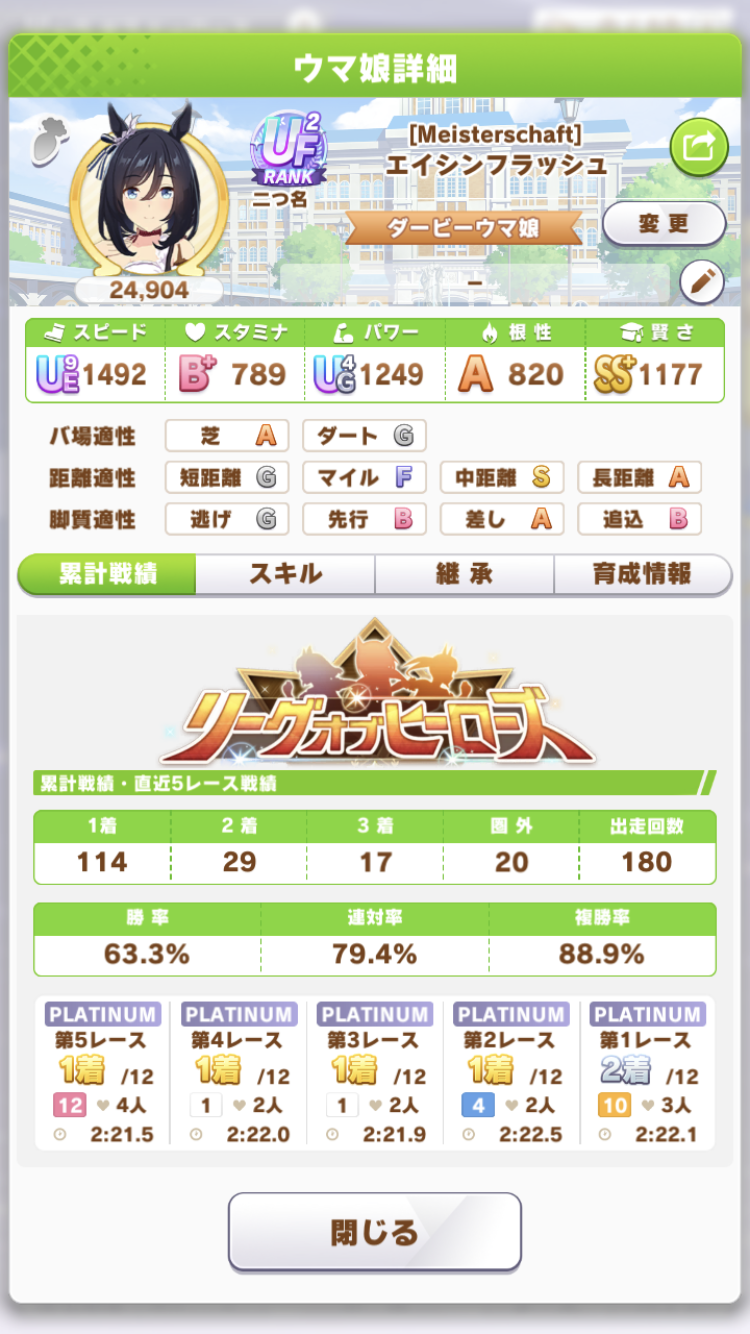 何故か競技場用に育てたマヤノが一番勝率高い謎