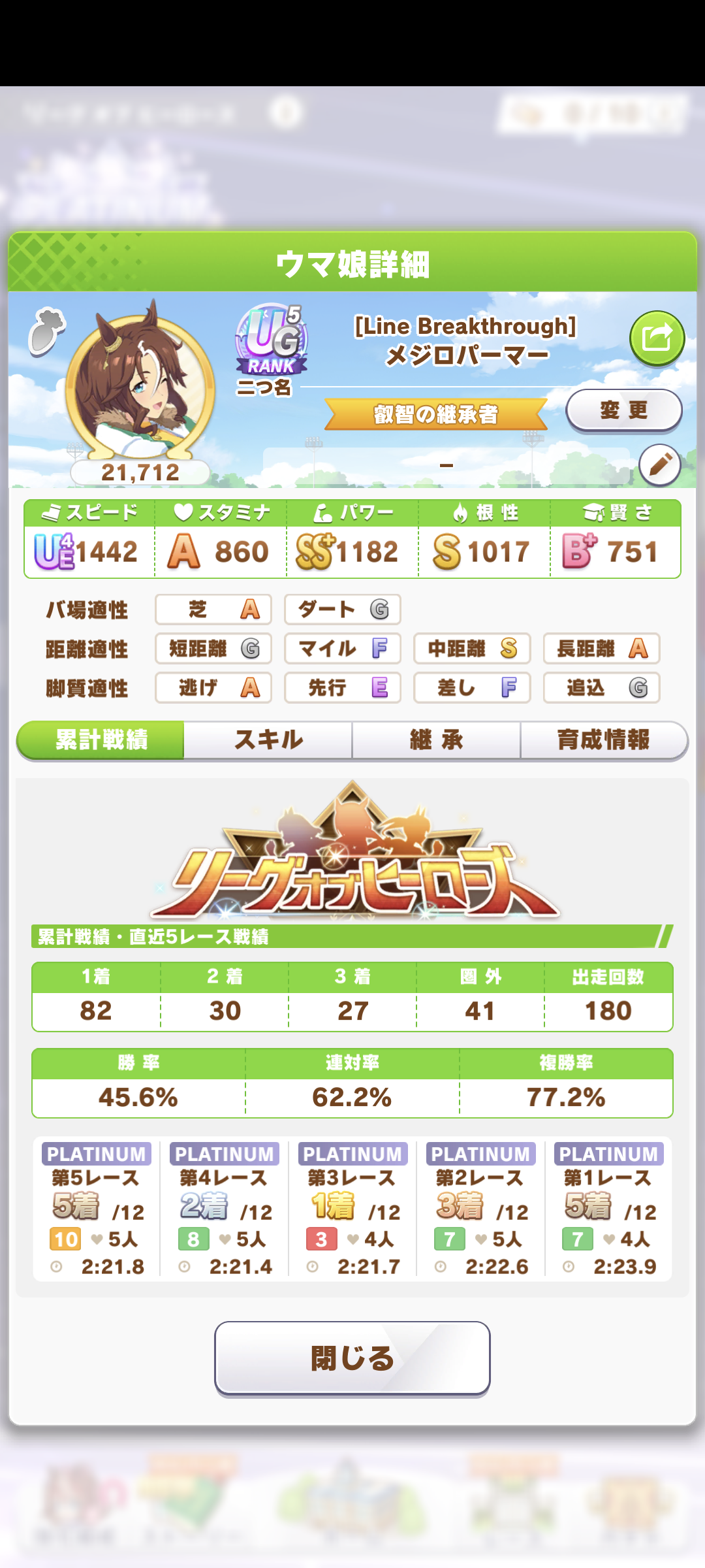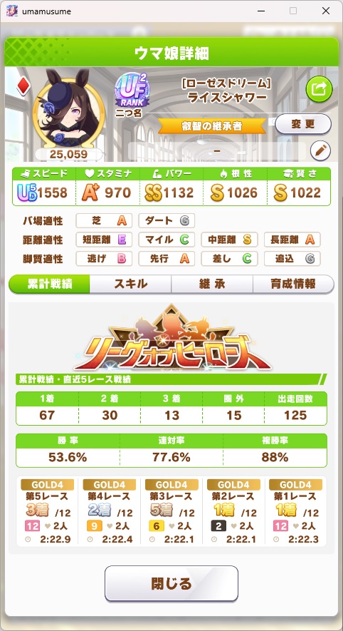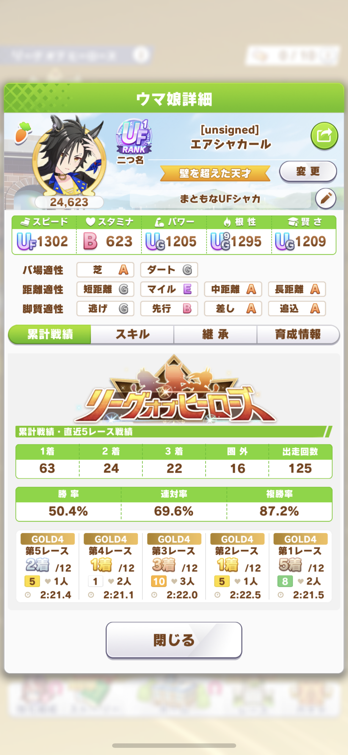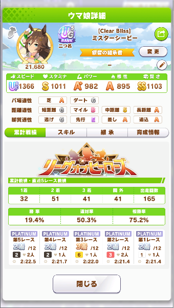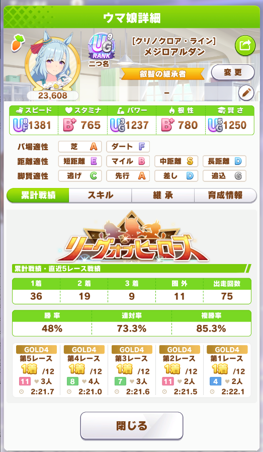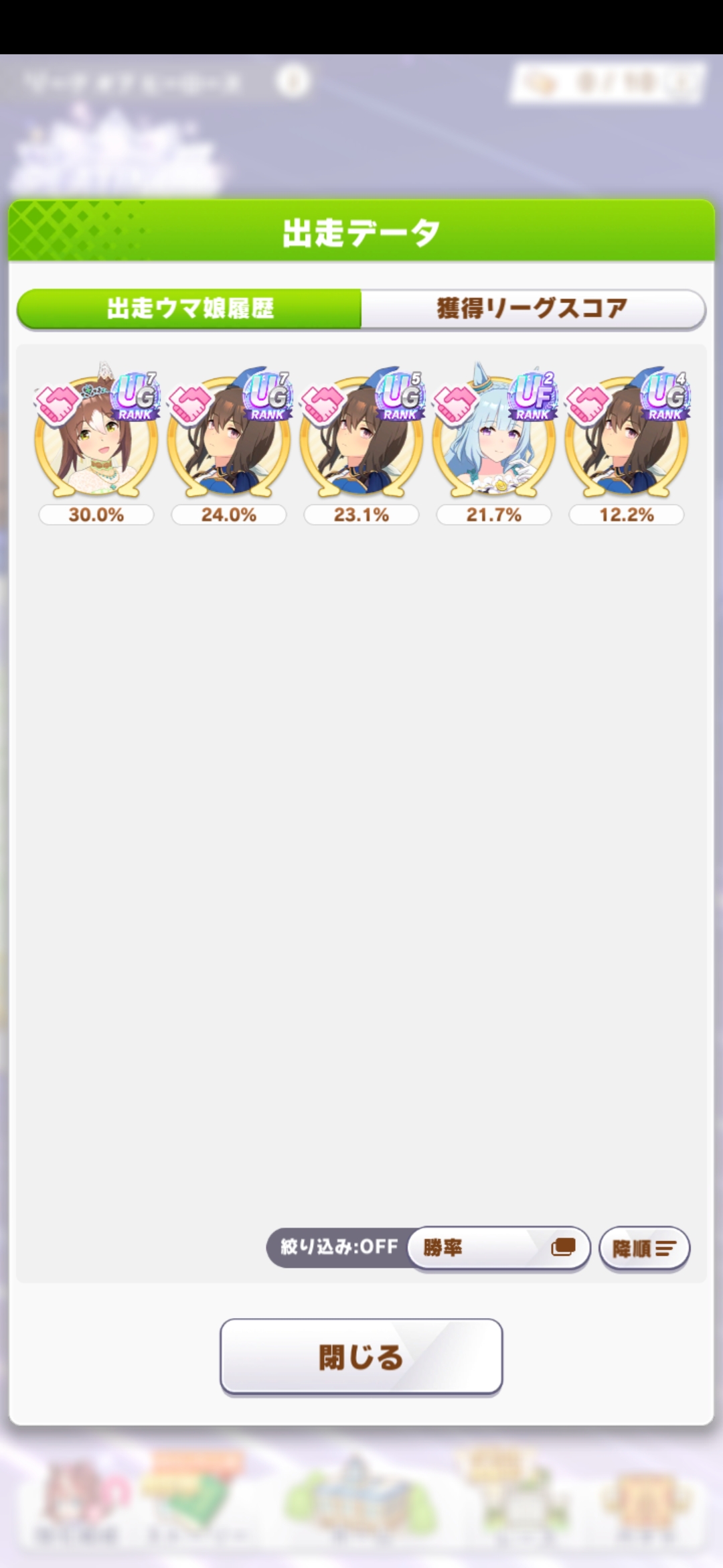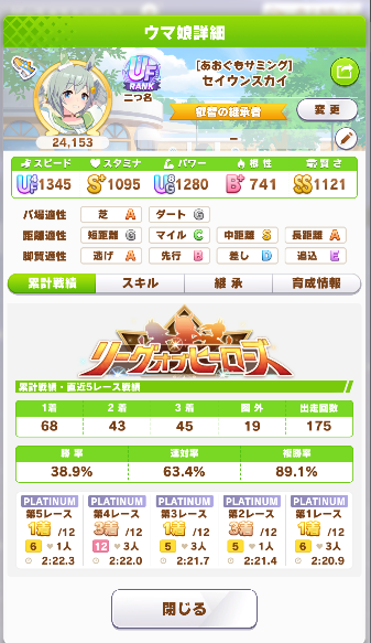 何故か競技場用に育てたマヤノが一番勝率高い謎