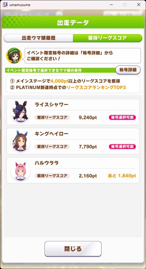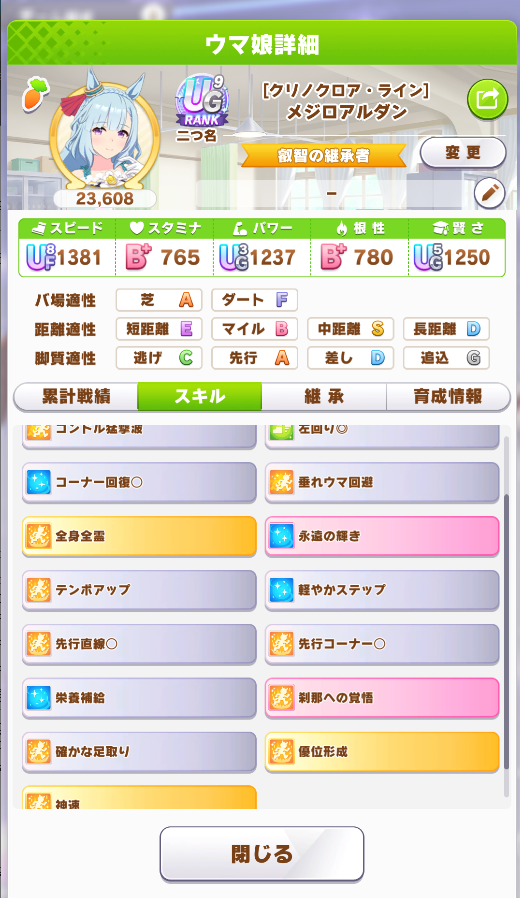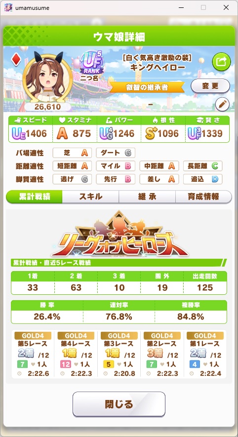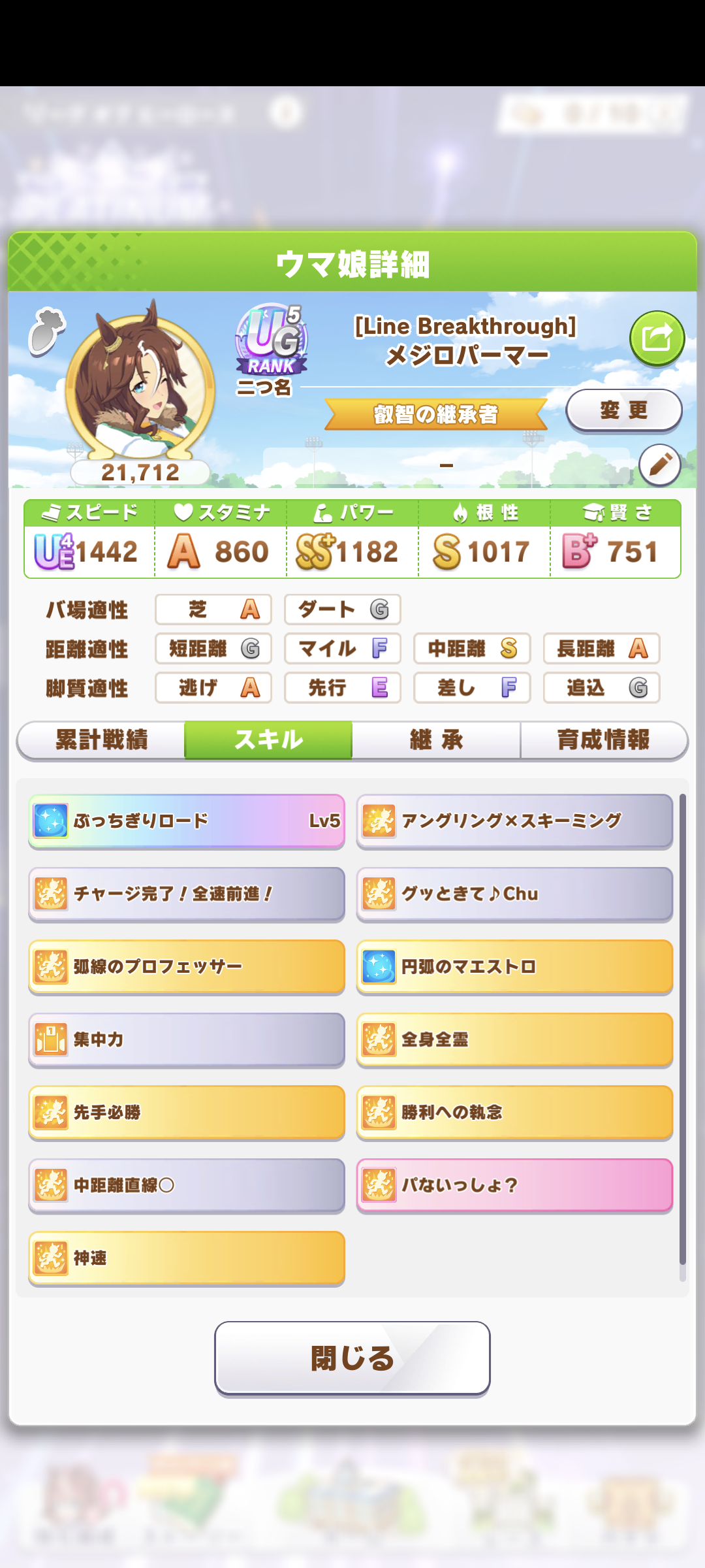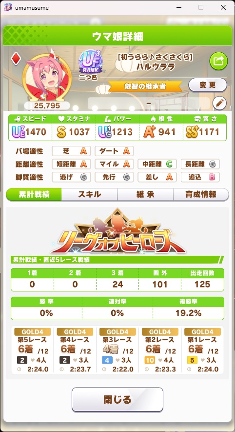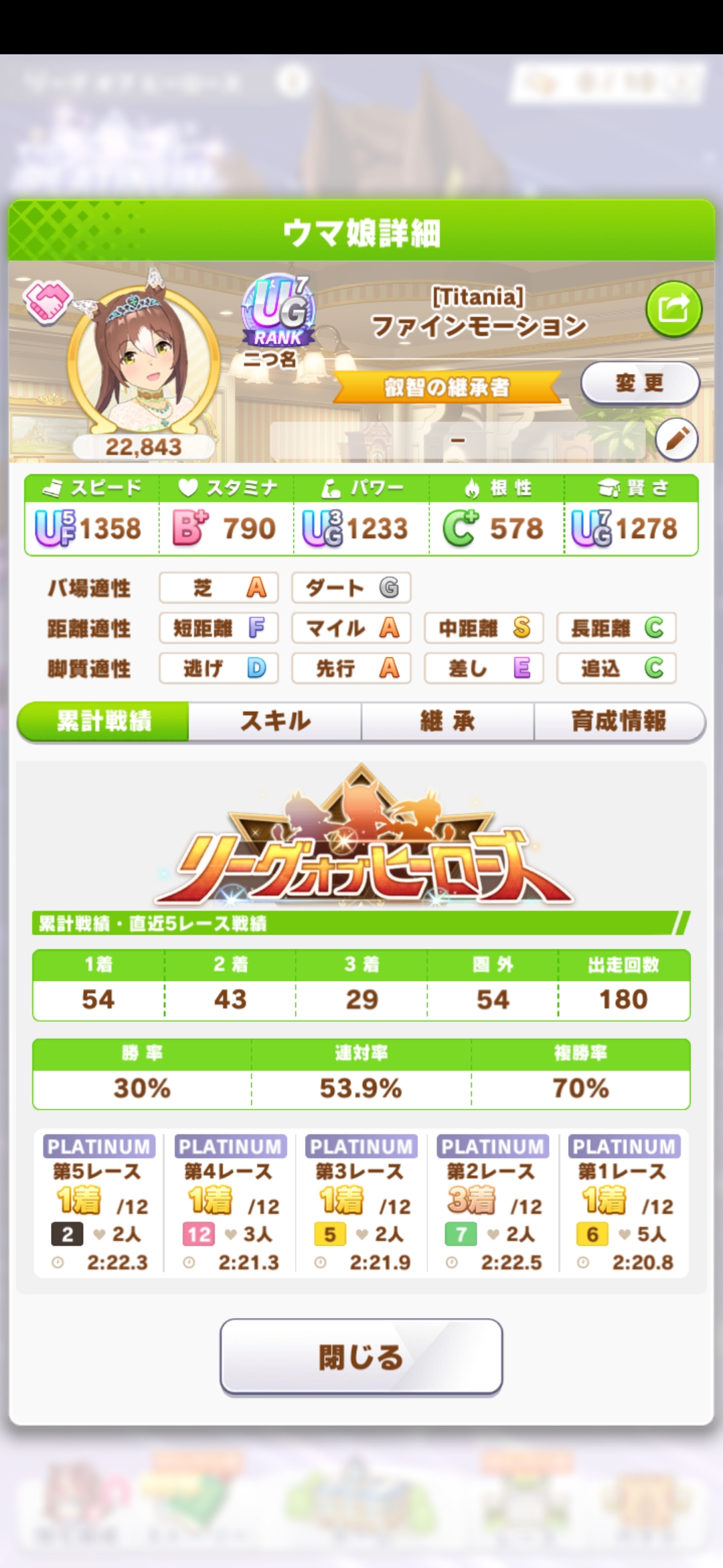 何故か競技場用に育てたマヤノが一番勝率高い謎