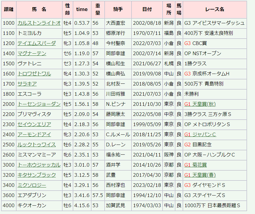 距離別レコードがこれらしい