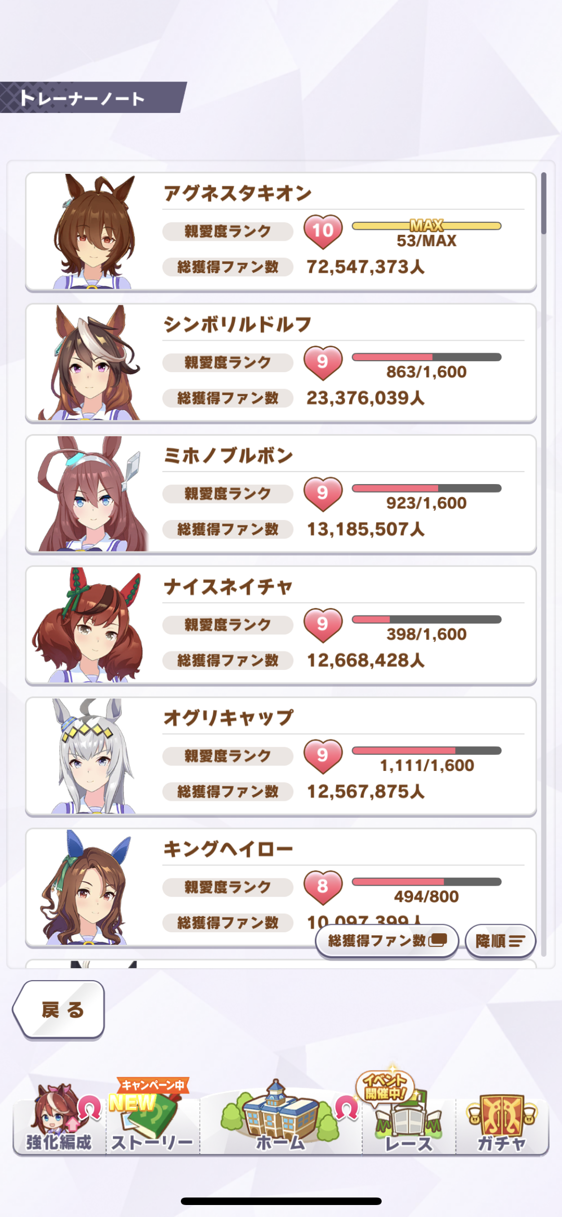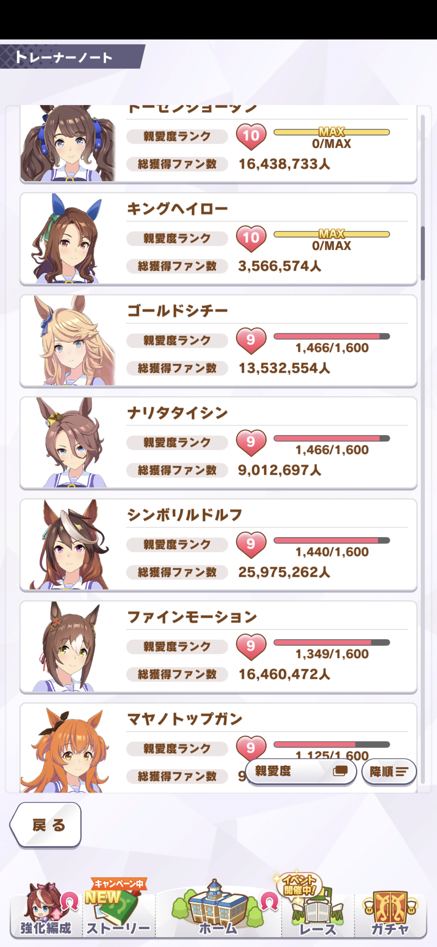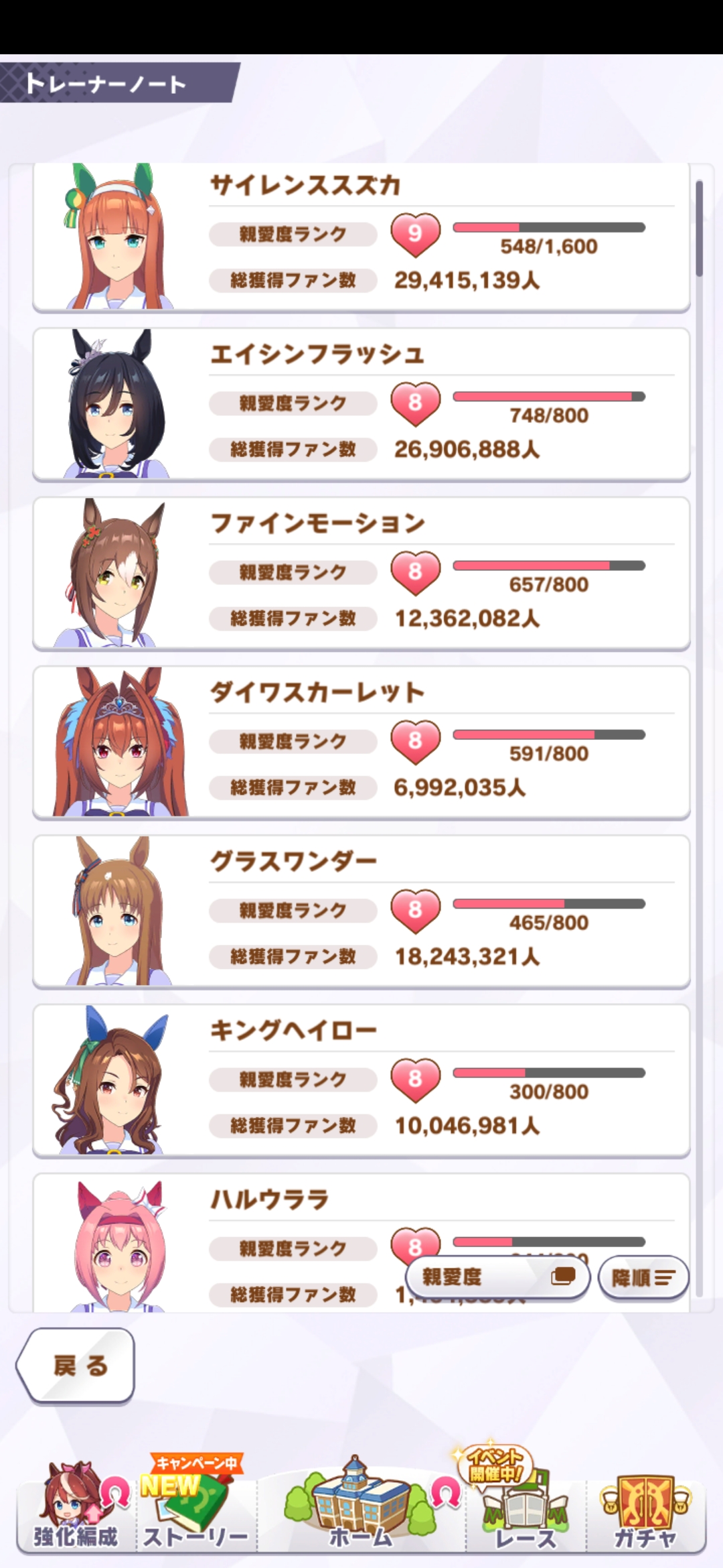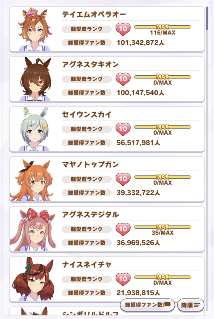チムレの関係でダート短距離は割と親愛度カンスト早くない?