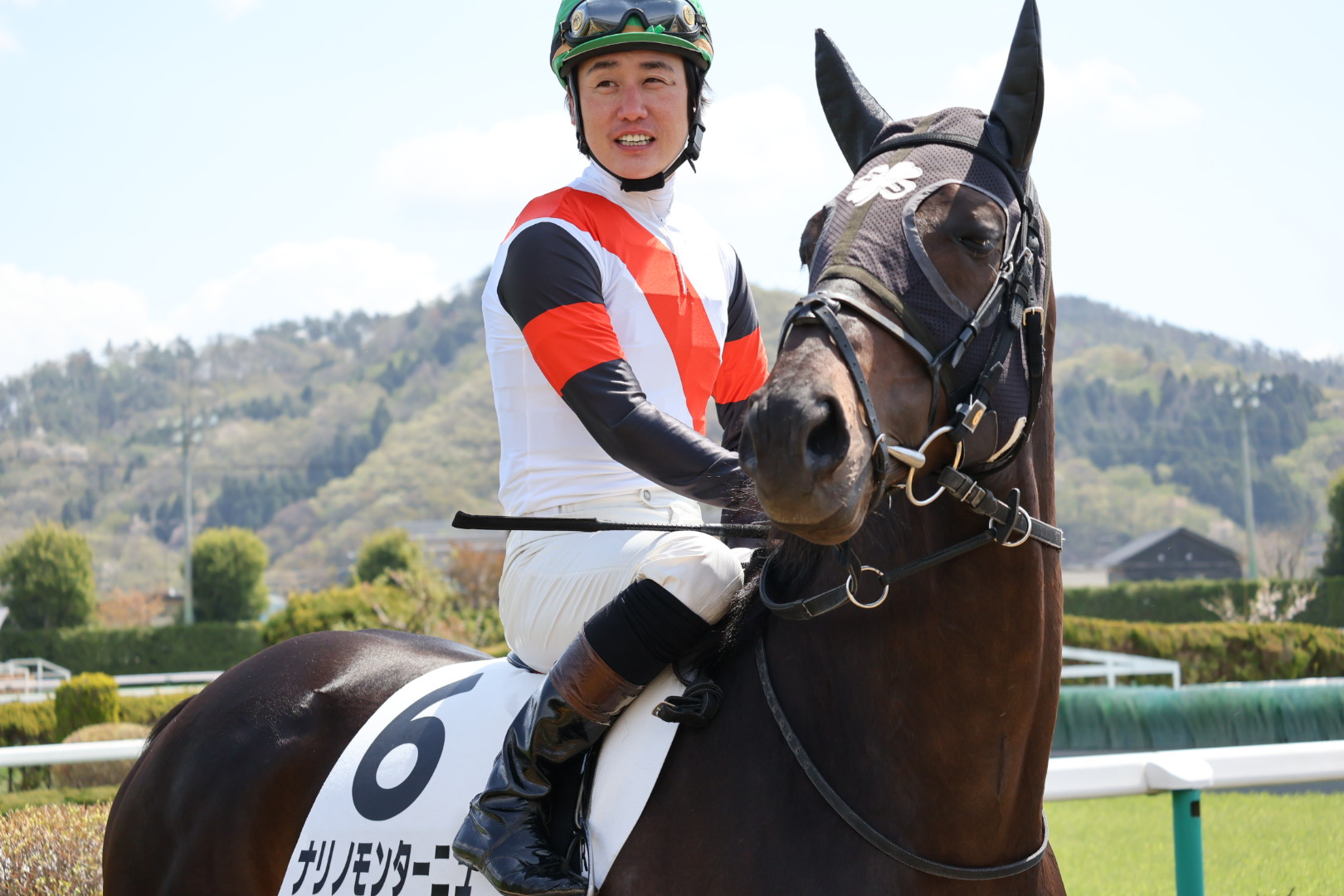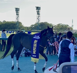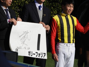 ユタカがウイナーズサークルでプレゼント貰ってる画像
