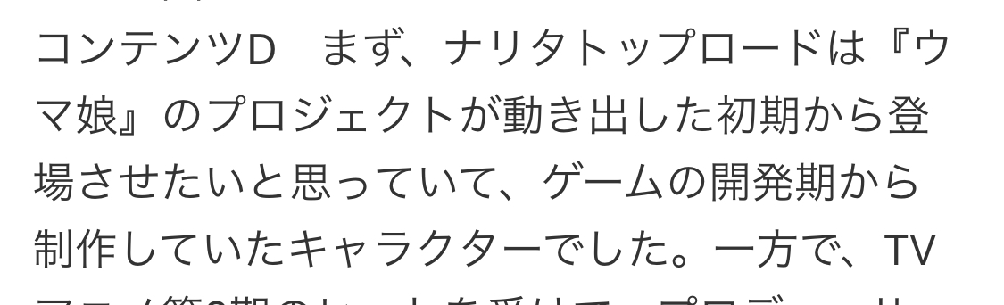 >まず、ナリタトップロードは『ウマ娘』のプロジェクトが