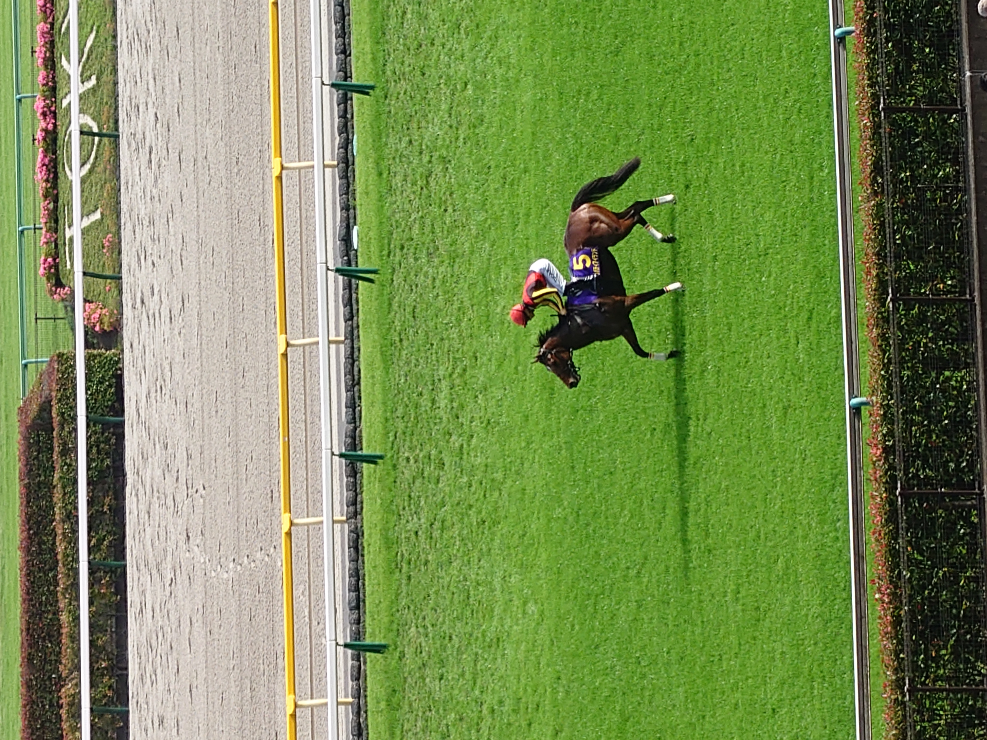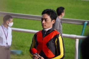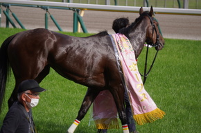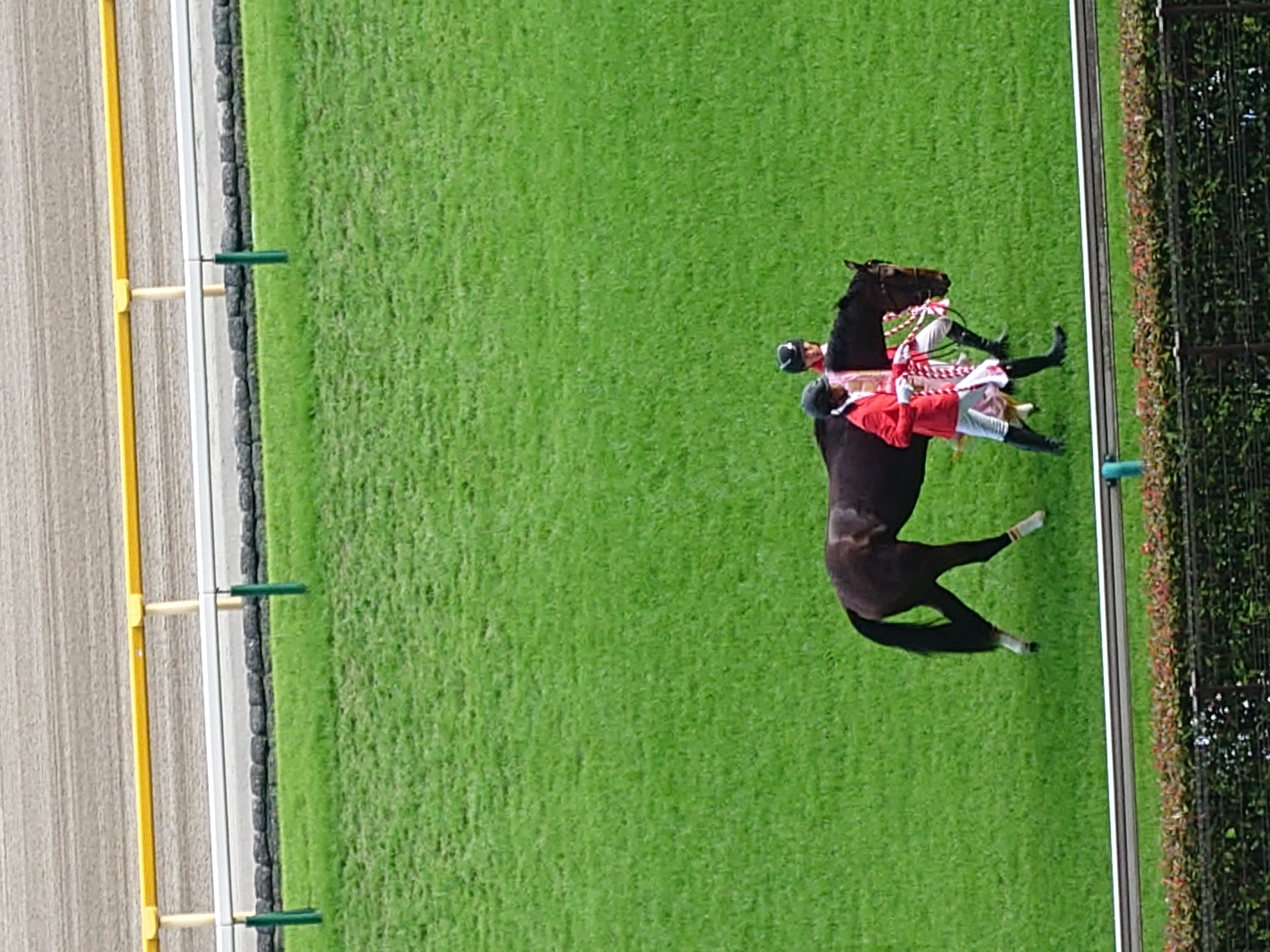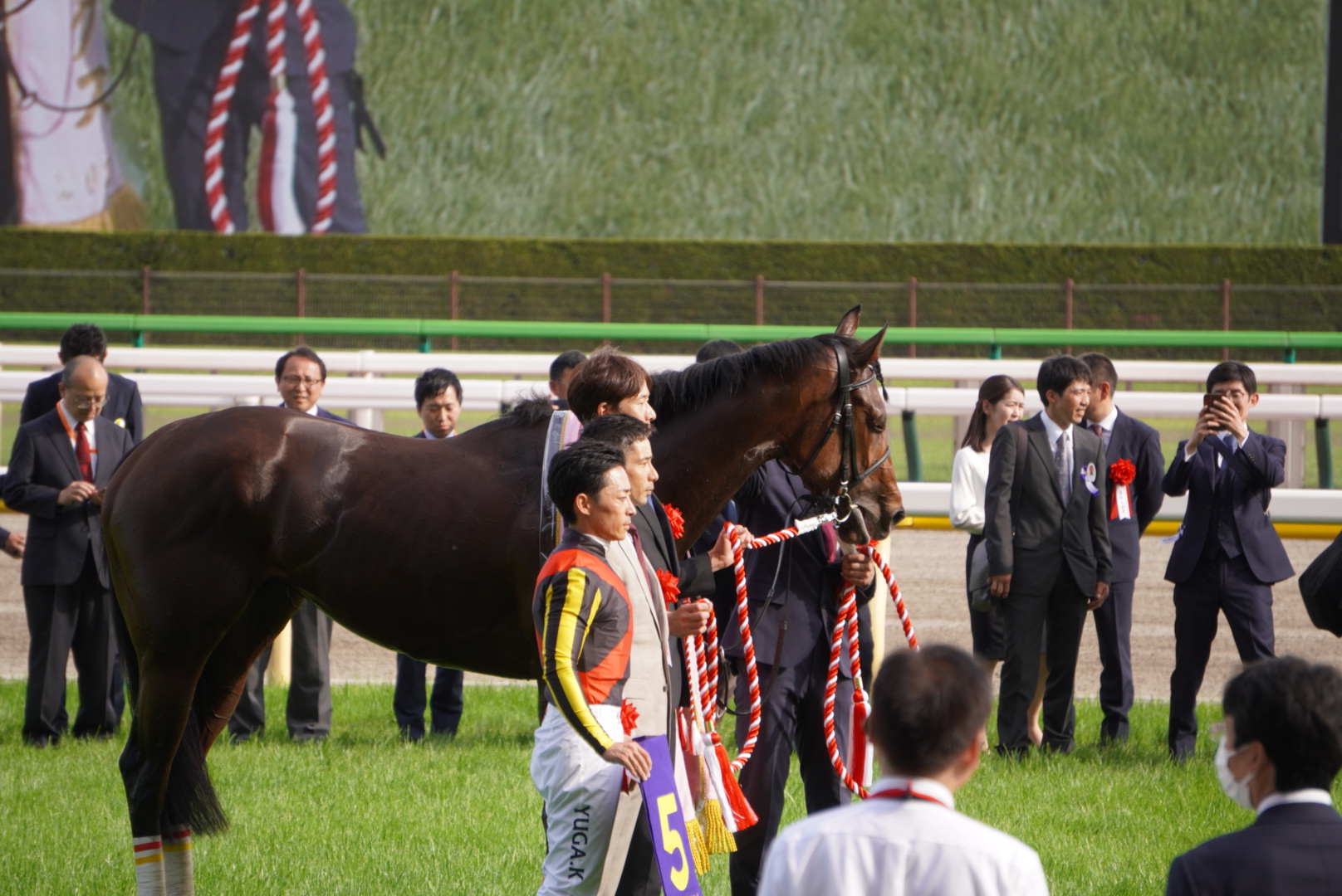 インタビューまでにウィナーズサークルの前まで行けたのは幸運でした、お陰で川田さんが撮れました