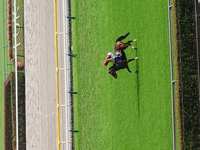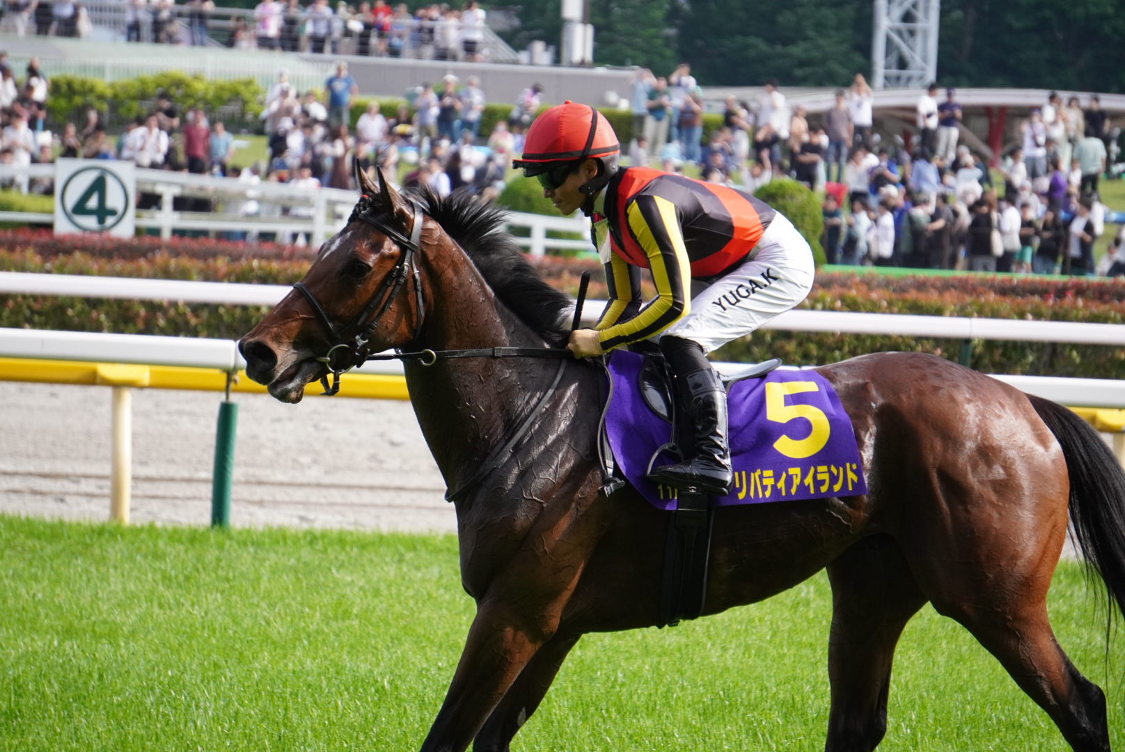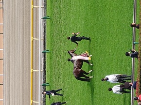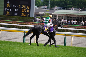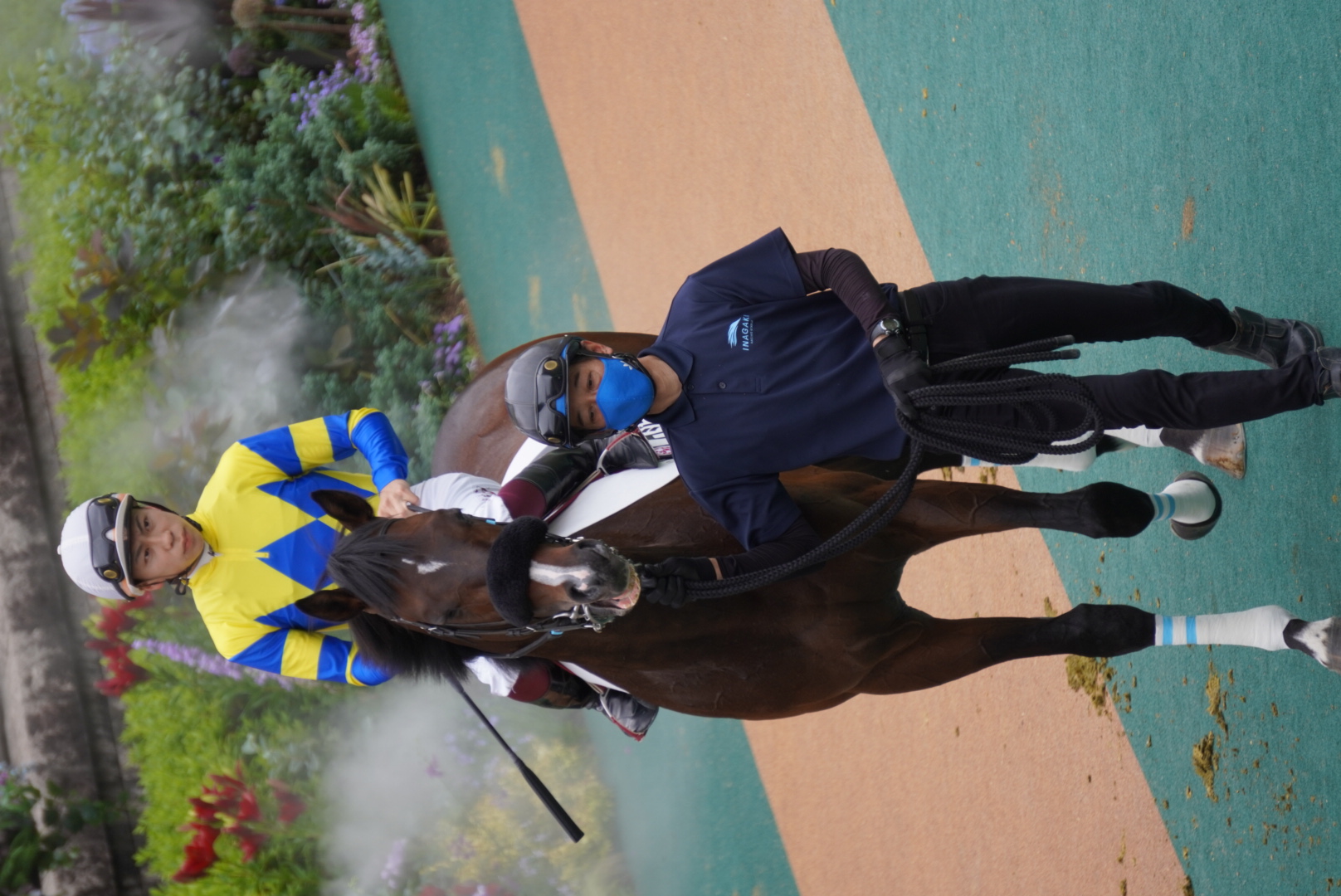 インタビューまでにウィナーズサークルの前まで行けたのは幸運でした、お陰で川田さんが撮れました