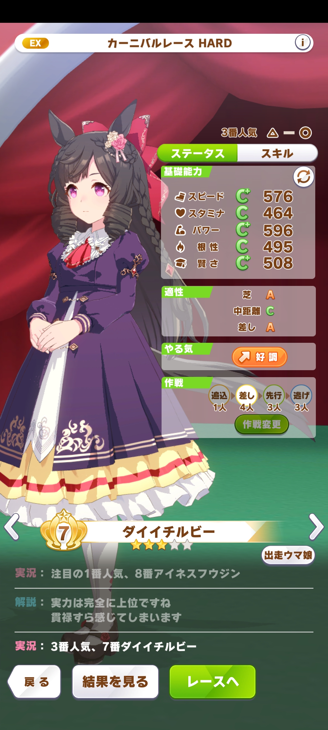 クラシックの夏合宿とお母さまとの面談で自分の目指すべき道を見定めて、トリプルティアラという迷いの元を吹っ切ってるから、むしろイベントが無くていいと思います。お嬢は塩いというより、目指すべき道を見つけたらそれ以外は何も目に入らなくなるタイプだと自分は思うから、それならそれでヨシって感じですね。