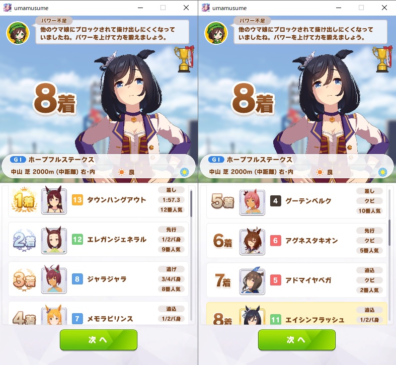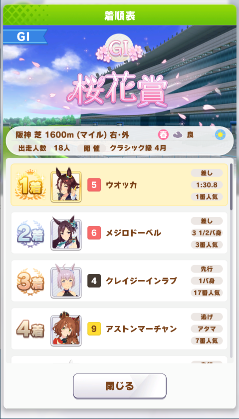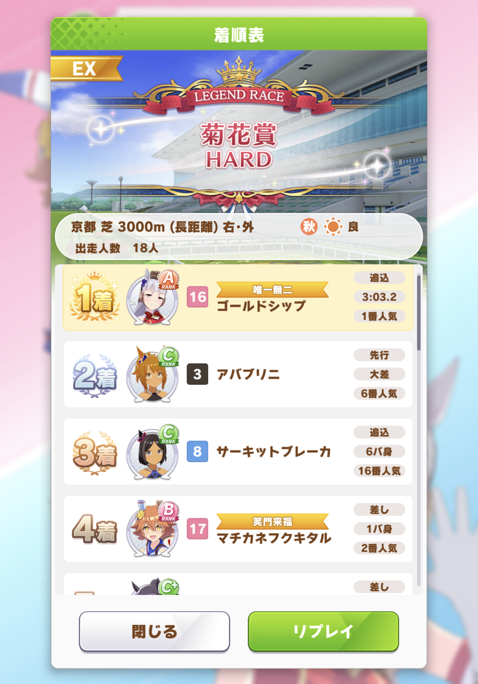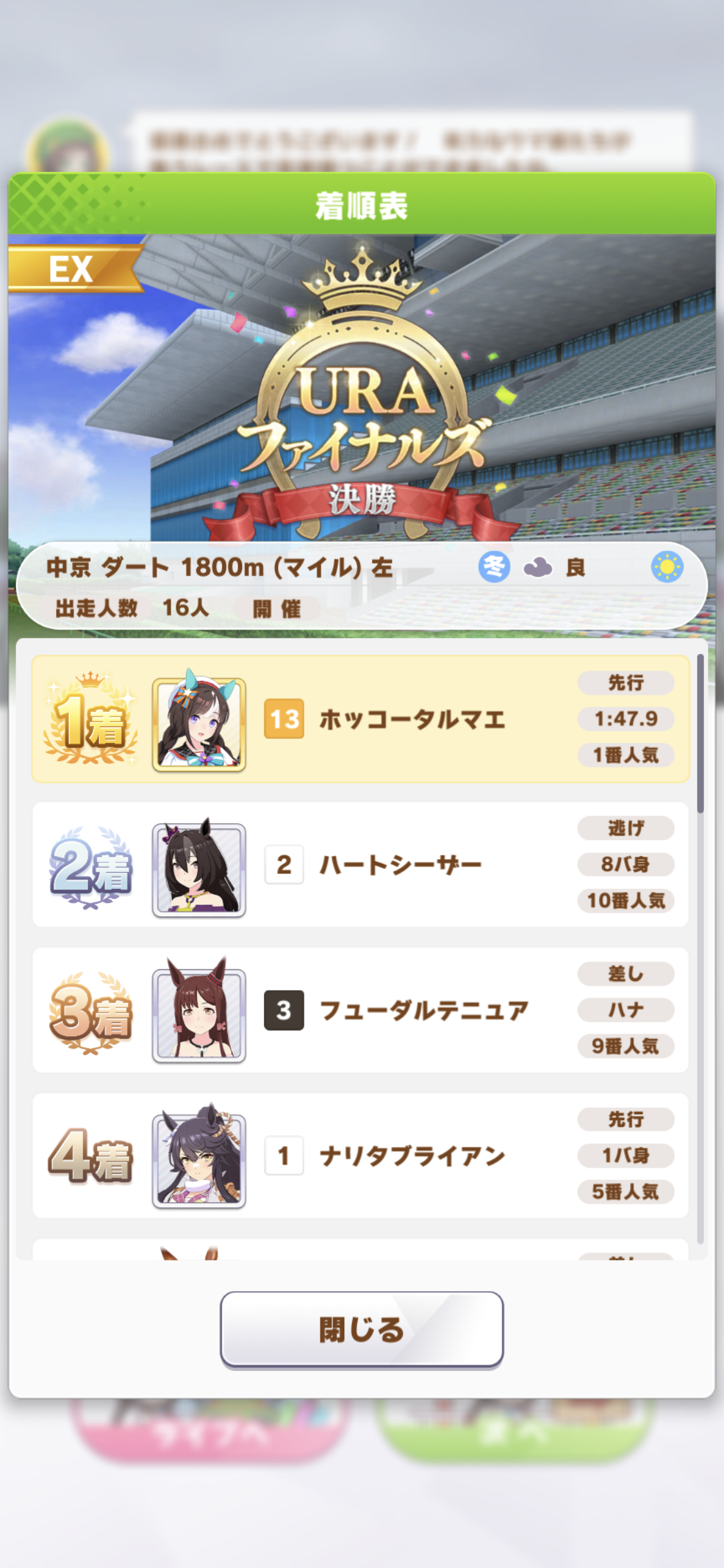 着順は撮れて無いんだがモブウマ娘が2位、3位くらいにおって声出して驚いた事は覚えとる。