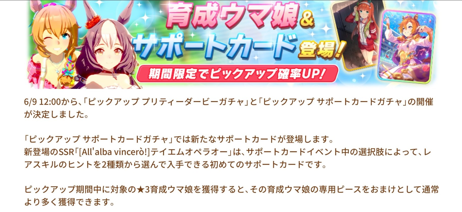キャラの方が復刻であんま回らなさそうだし2種レアヒント云々を考えるとかなり強めなサポカで来そうで怖いね