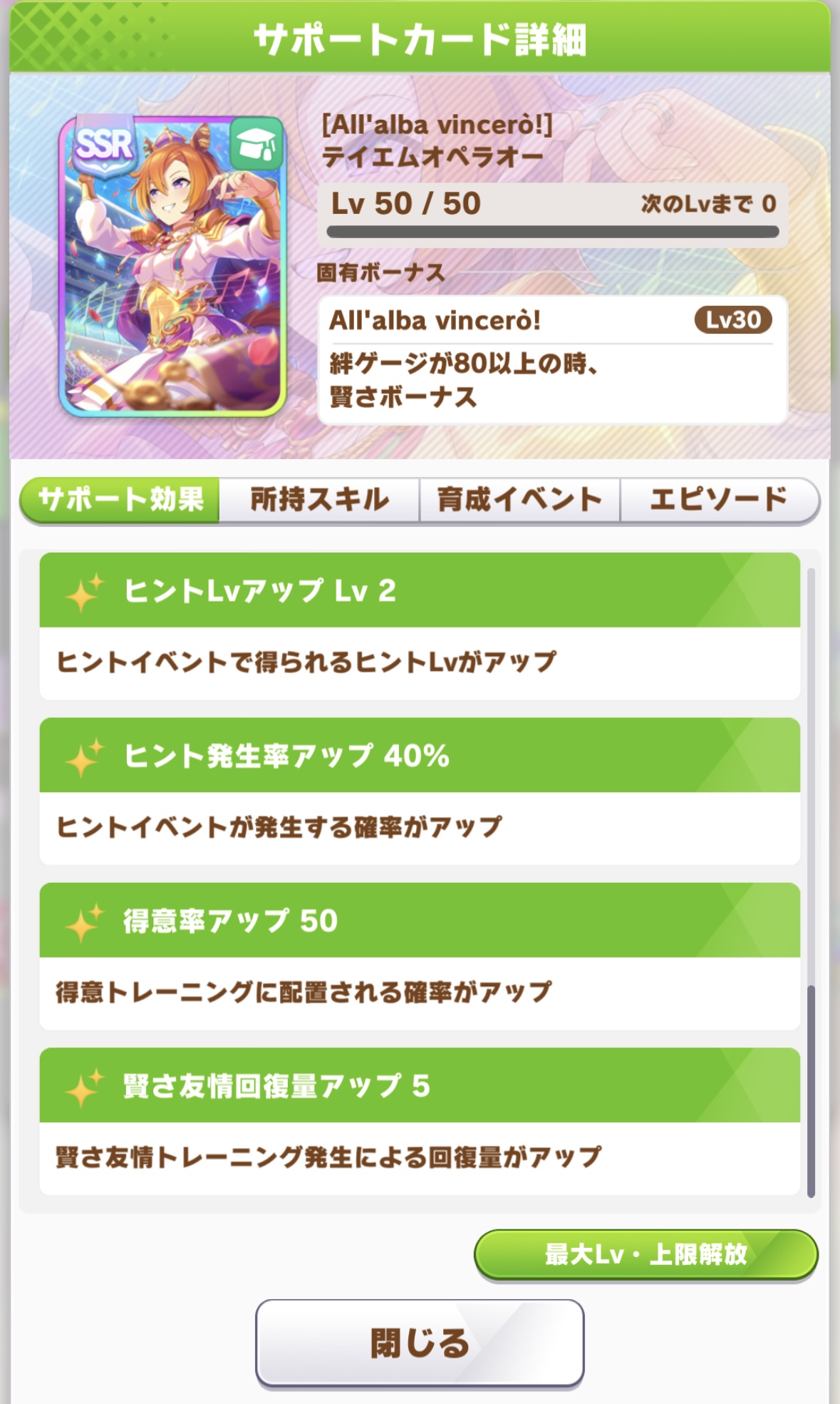 賢さはファインを過去にすべく次々と高性能サポカが出た時期があったし、スタミナでも明確にクリーク超えを出されてもしゃーないという気持ちはある