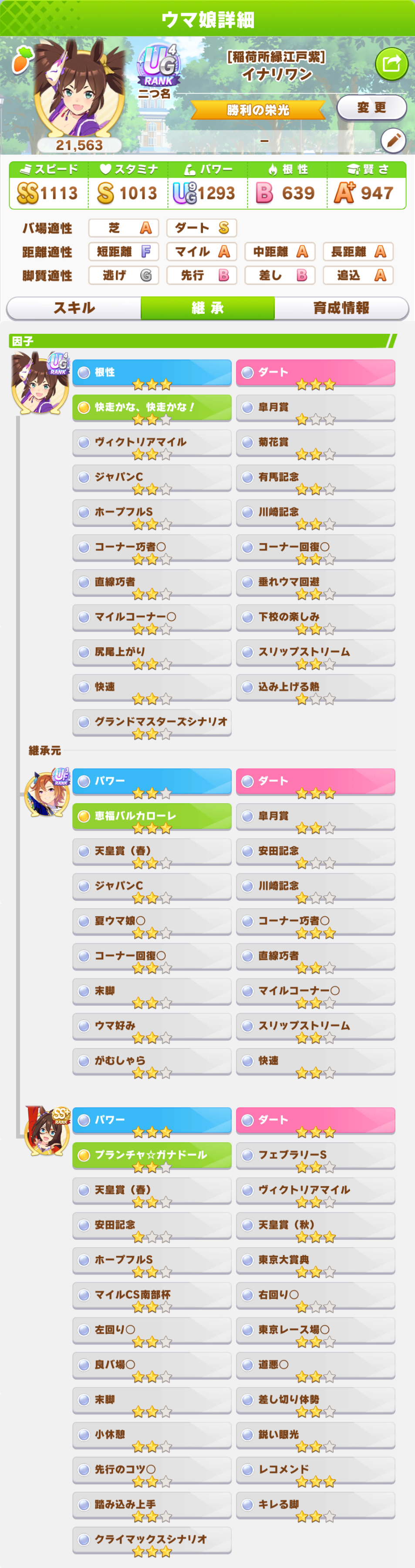 理想としては極力レース因子と汎用スキルで固まってる物が良いのだ