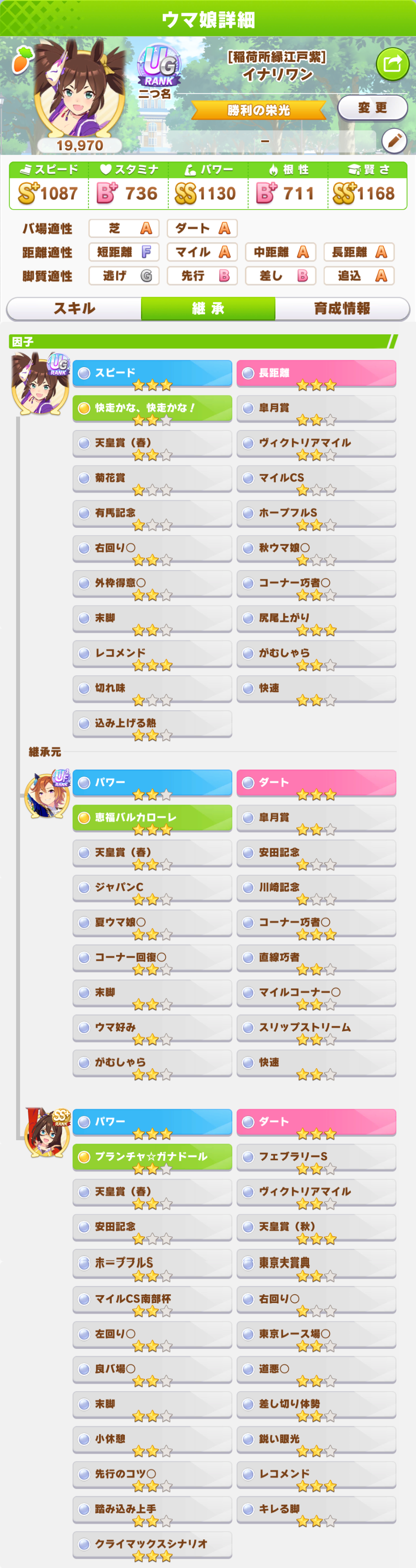 俺は特定の脚質や距離の因子は作ったり強化しないようにしてるな