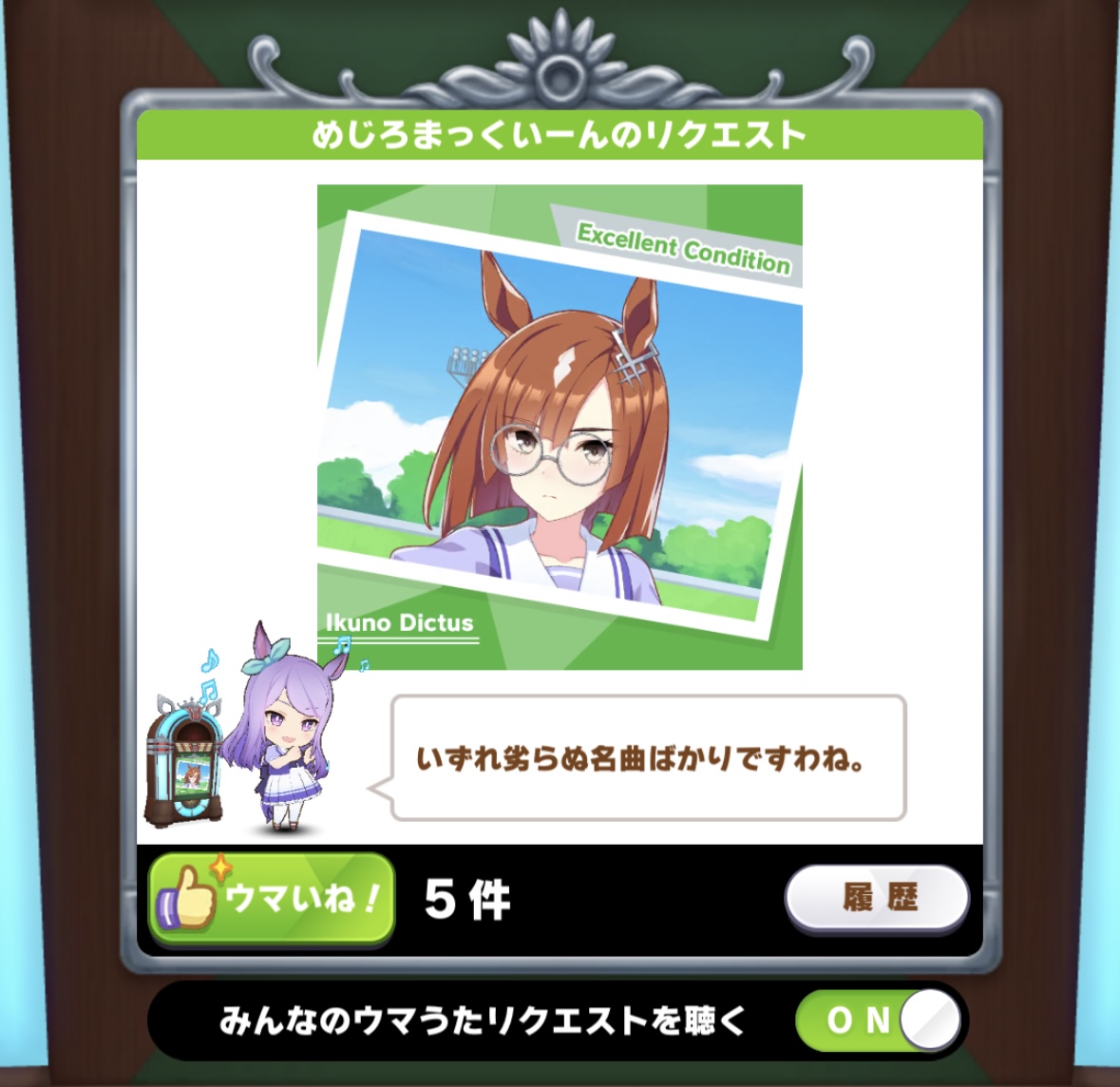 イクノさんのソロ曲がジュークボックスに追加されてますわ!